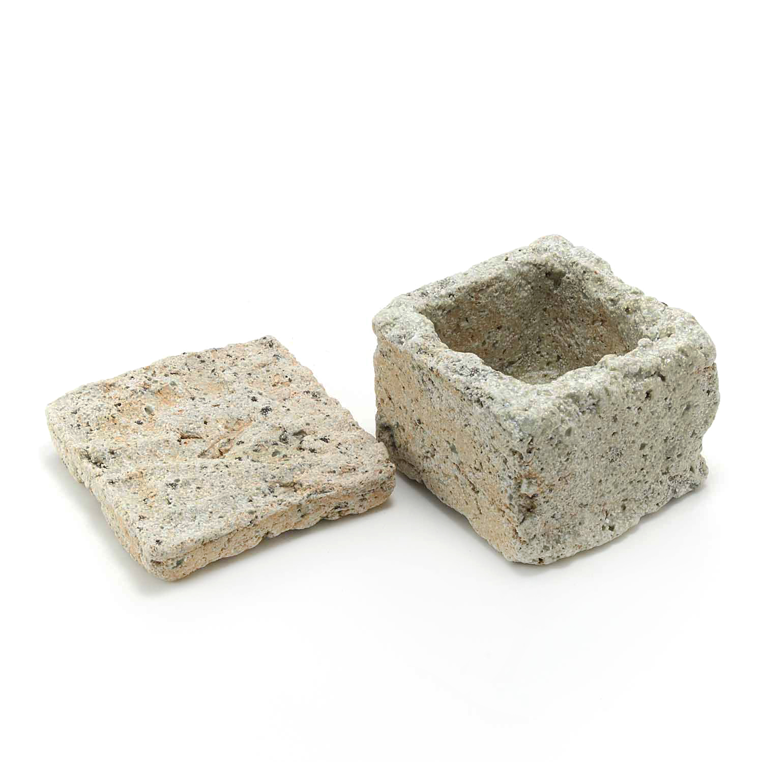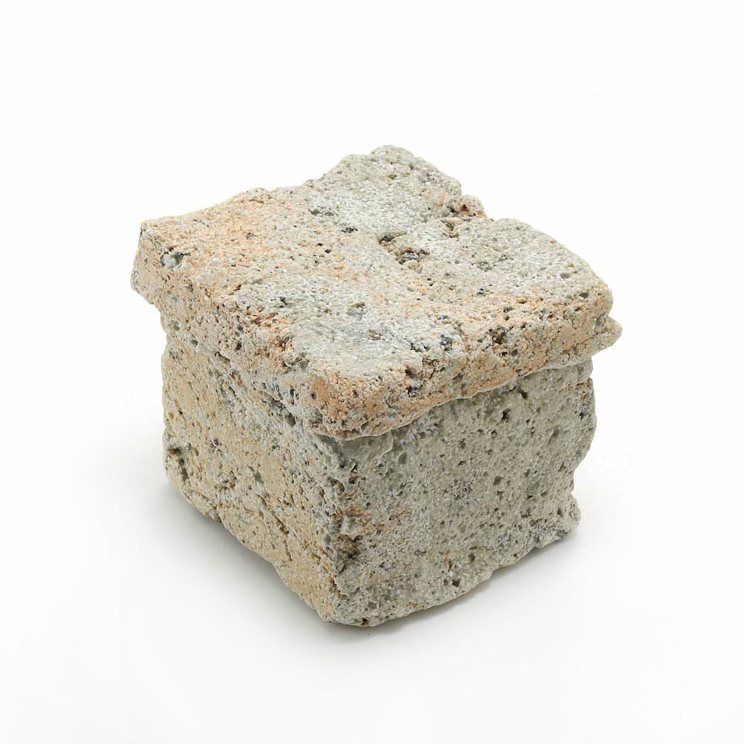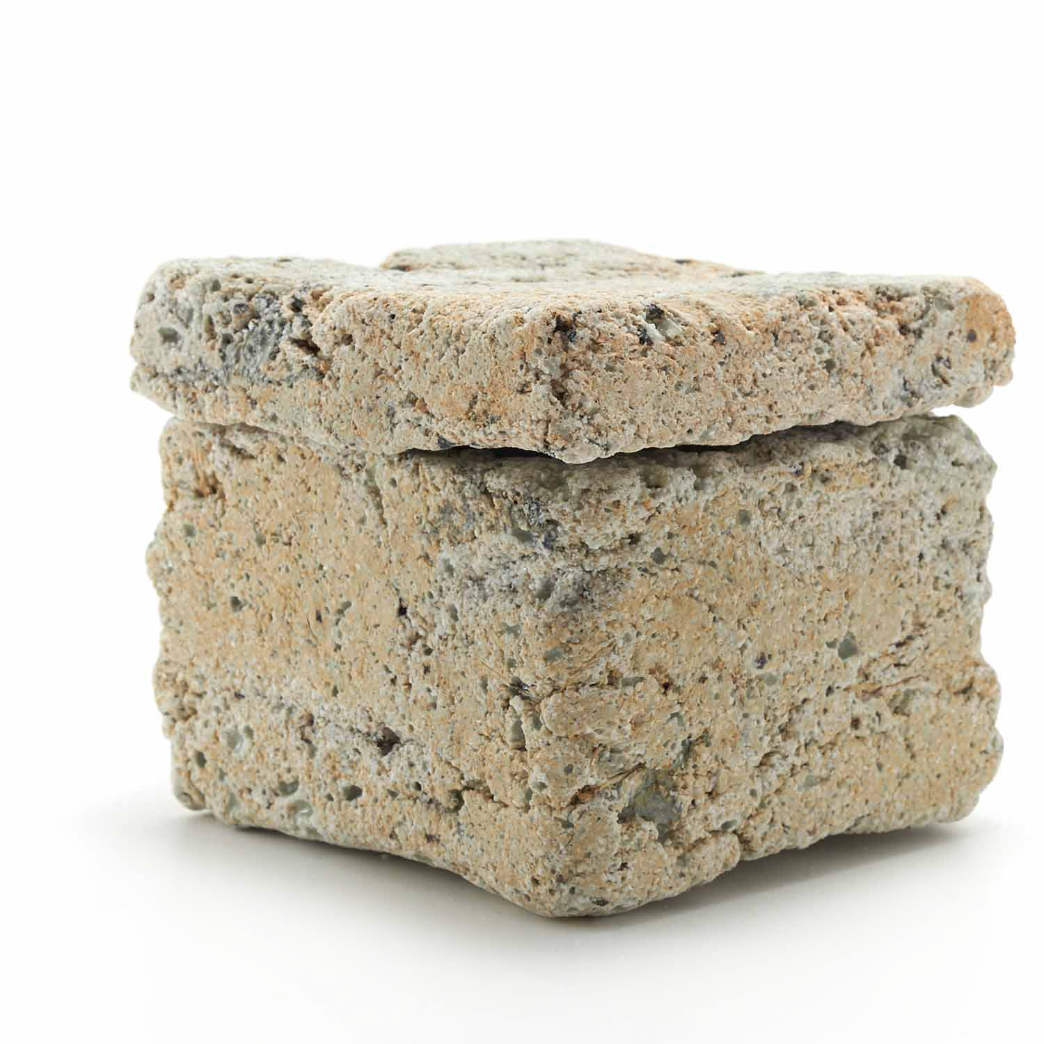 ベージュの立方体の小さな匣です。ドライな質感、制作の過程で生まれた隙間のなどのディティールが魅力です。