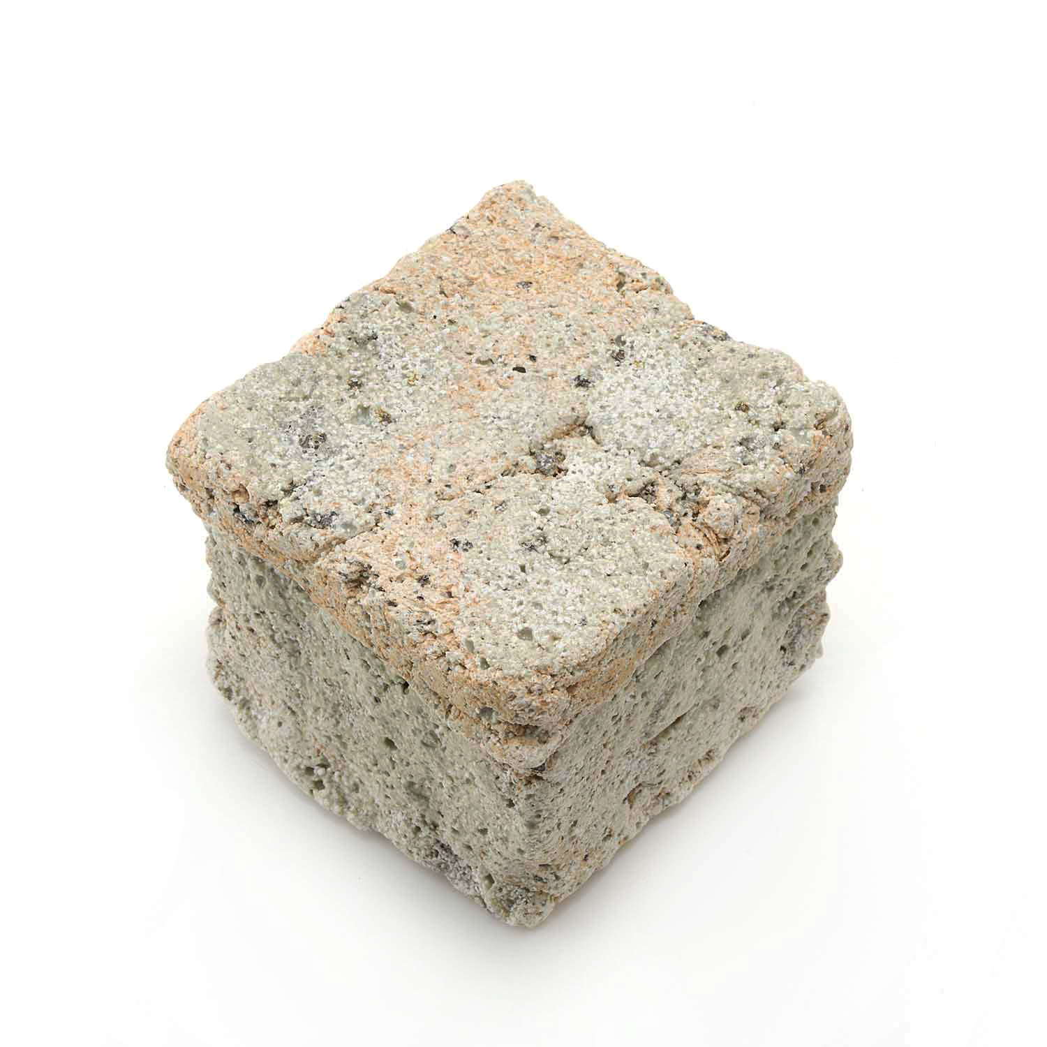 This is a small white cubic sack. The dry texture and details such as gaps created during the production process are appealing.