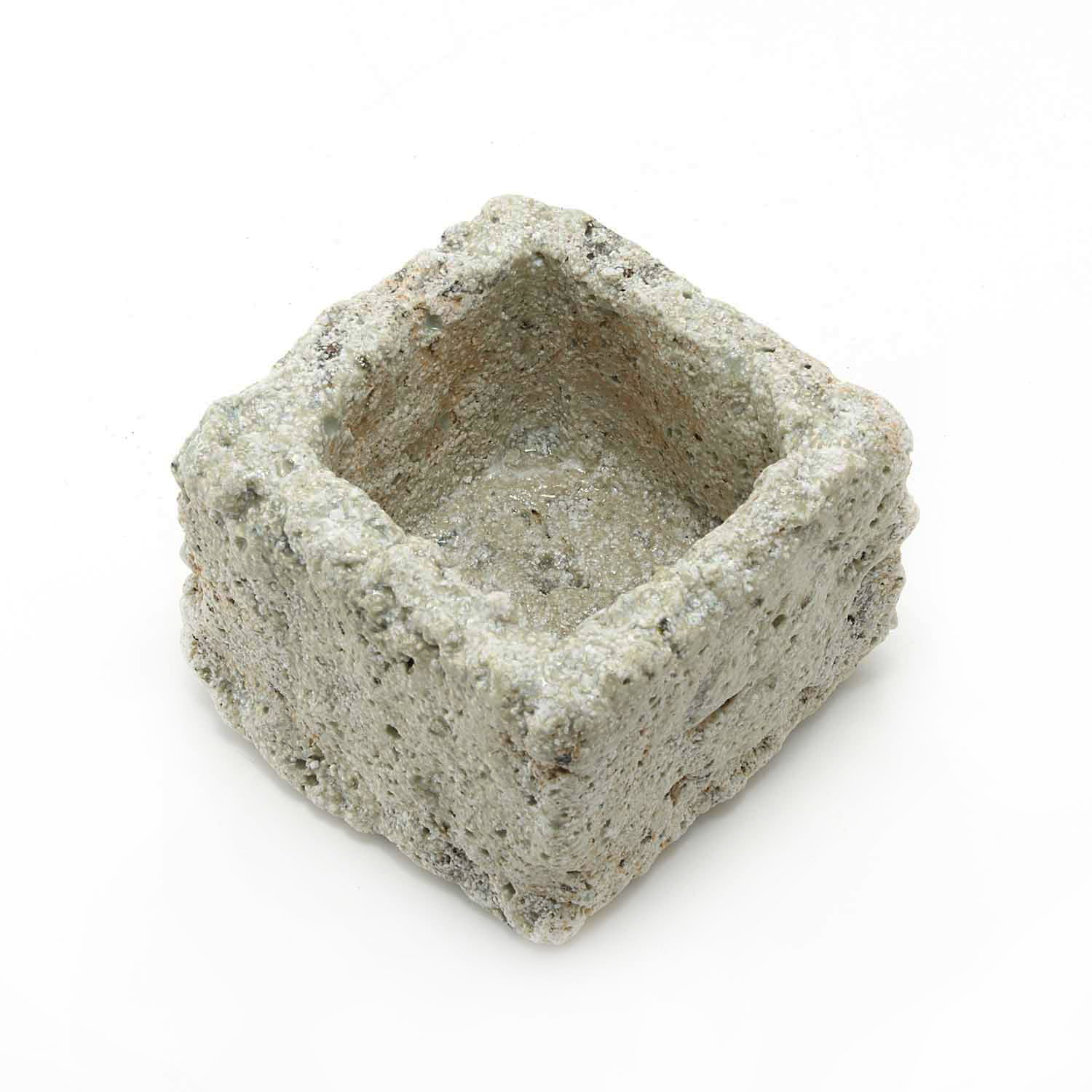 The production of this series of sacks began with a copy of a Roman plaster box. Since I make each piece from clay, glassy materials, and sometimes straw, no two pieces have exactly the same texture.