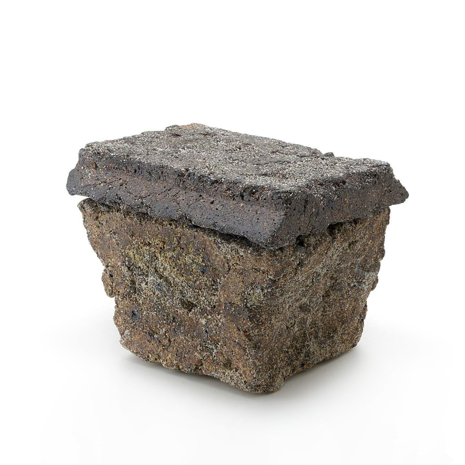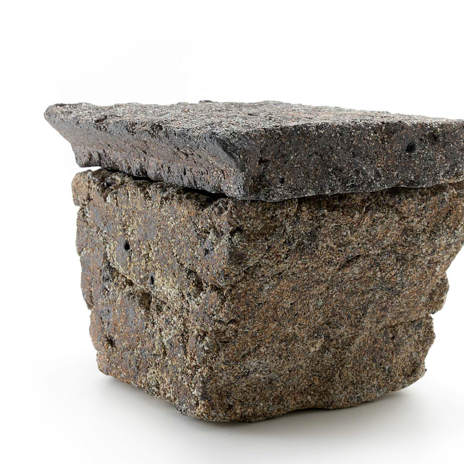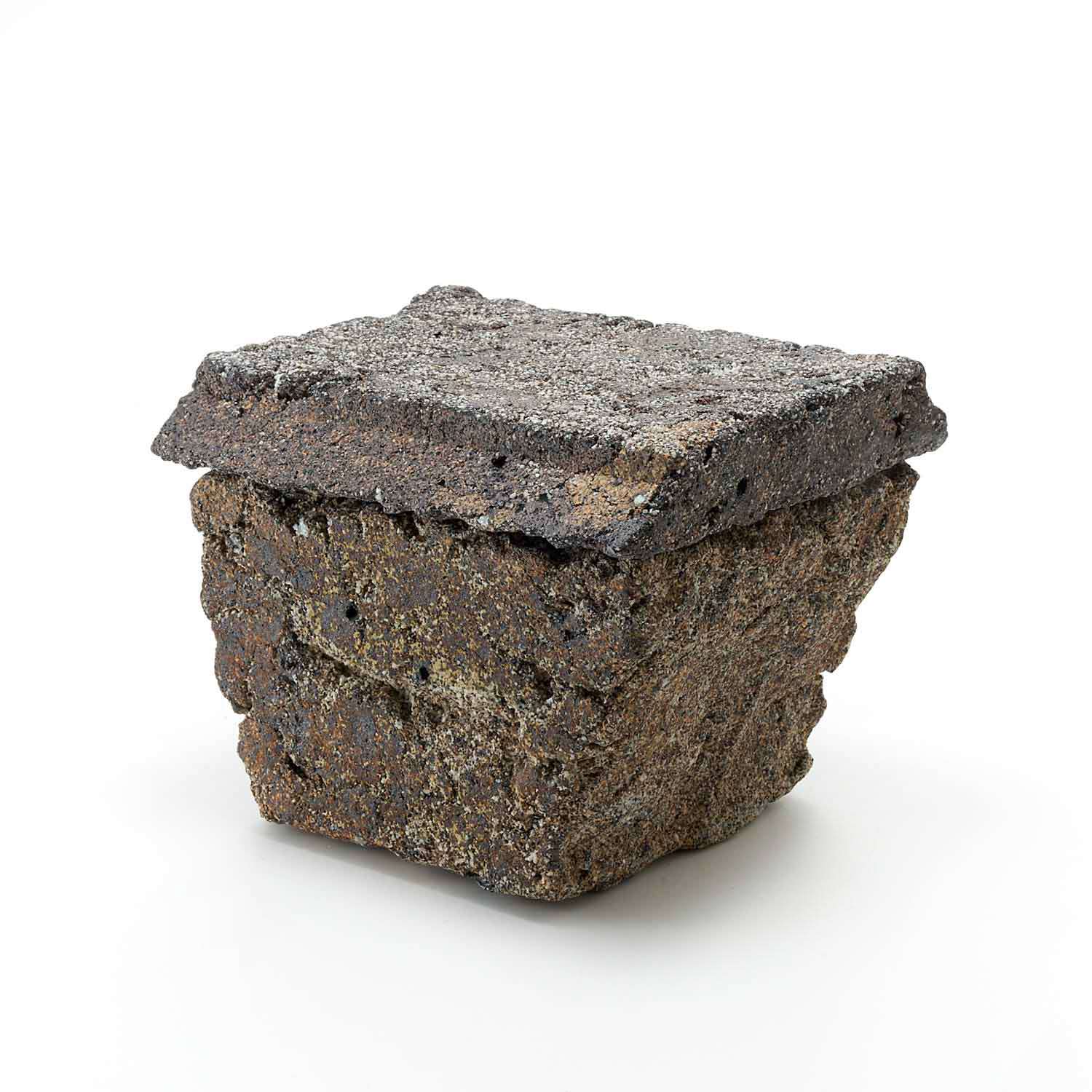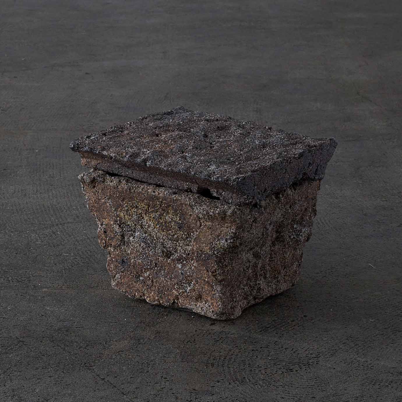 ローマ時代の漆喰の箱の写しから、この匣のシリーズの制作が始まりました。土やガラス質の素材、時には藁なども入れ毎回粘土を作ってから制作をしているため全く同じ質感の作品はありません。