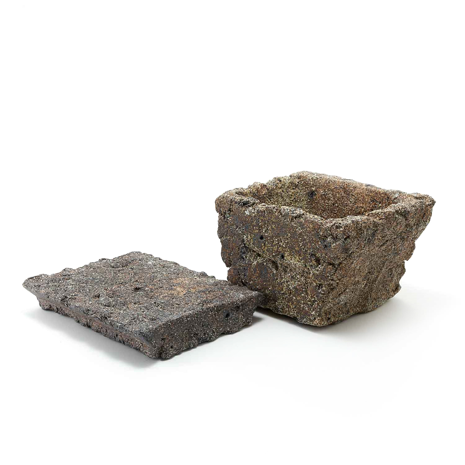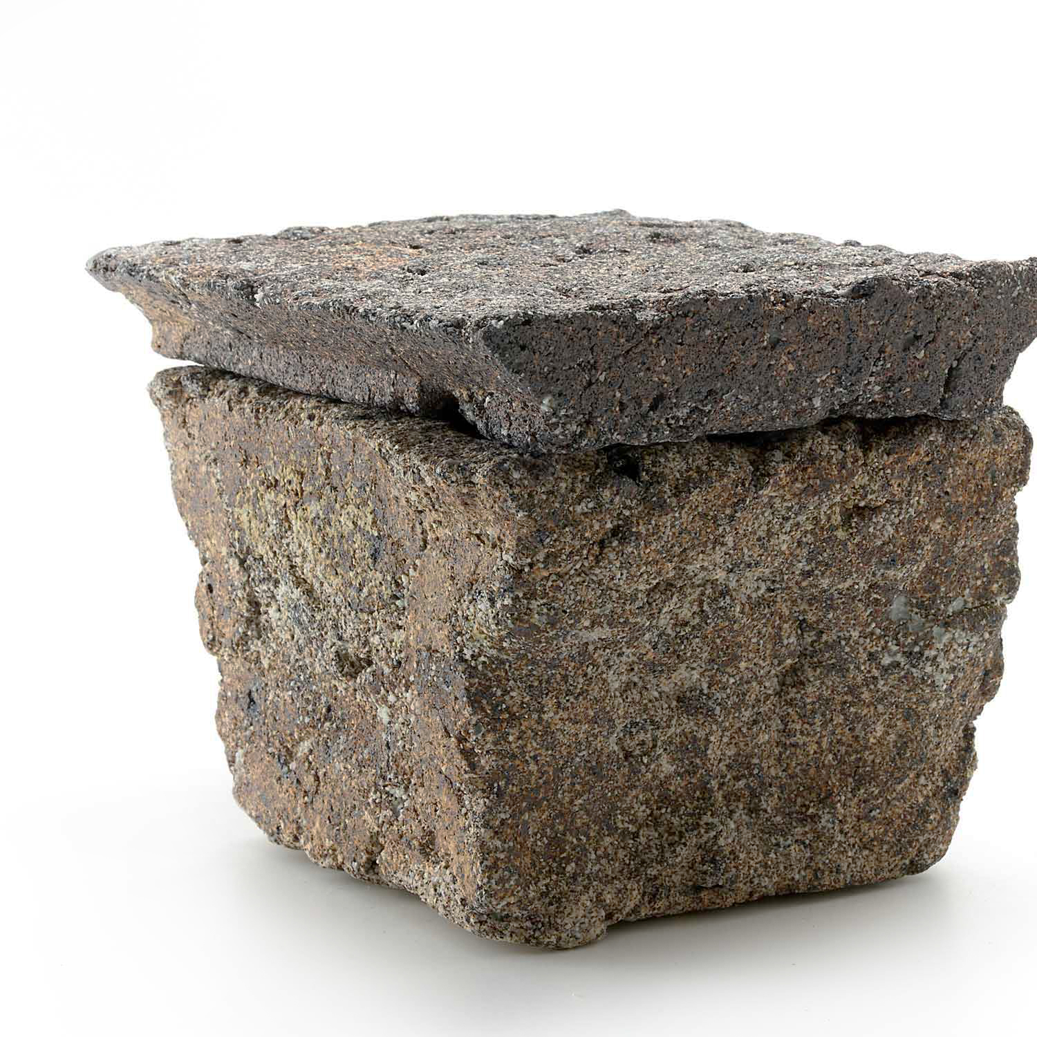 The production of this series of sacks began with a copy of a Roman plaster box. Since I make each piece from clay, glassy materials, and sometimes straw, no two pieces have exactly the same texture.