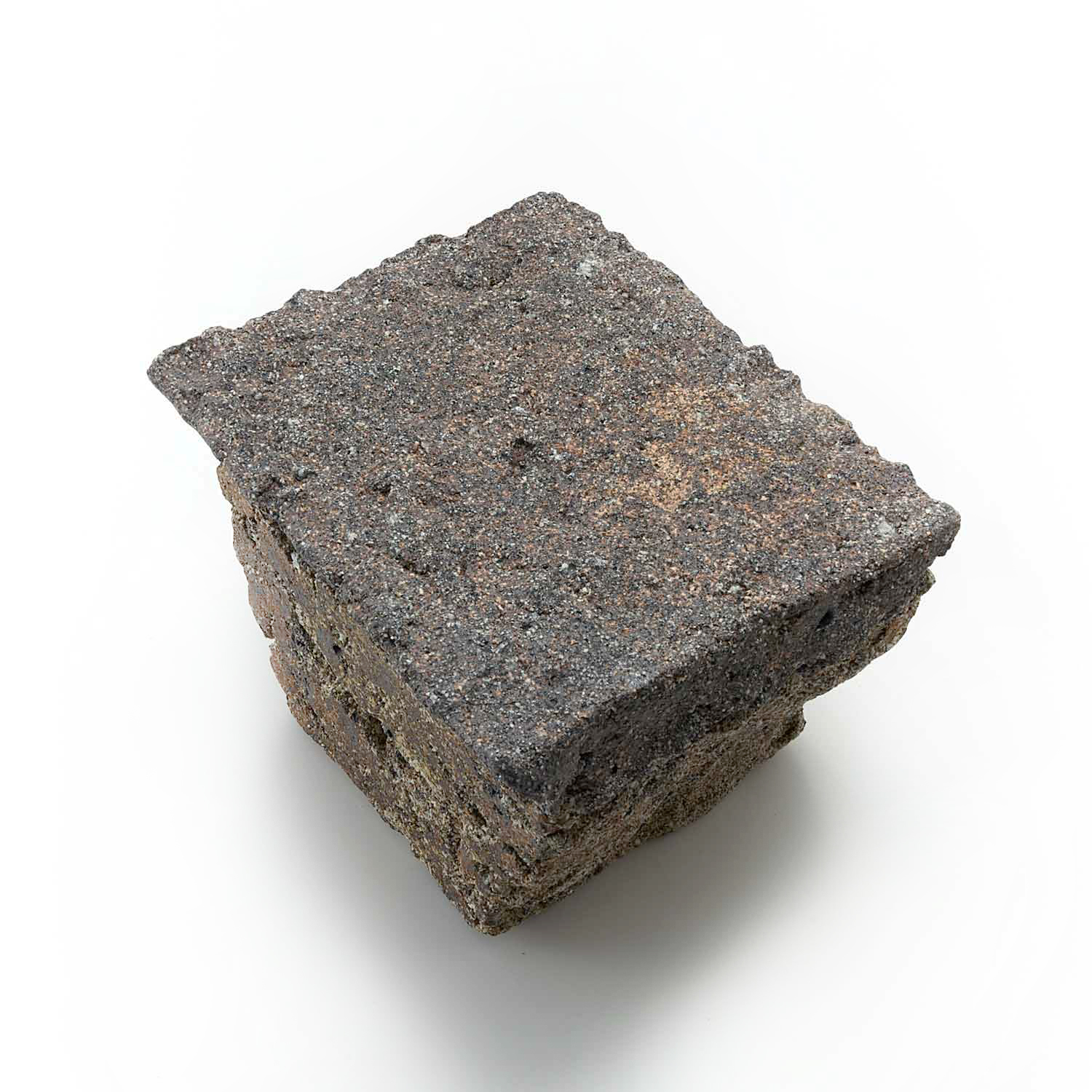 逆台形の形がユニークな作品。焦げたような質感と荒々しいテクスチャーが魅力的です。