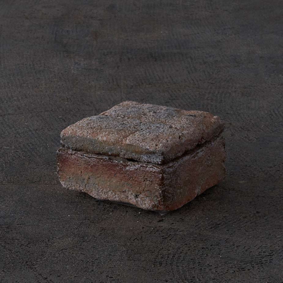 焼きしまった小さな立方体の匣。酸化金属を土にいれることにより部分的に発色したきれいな青が魅力的です。