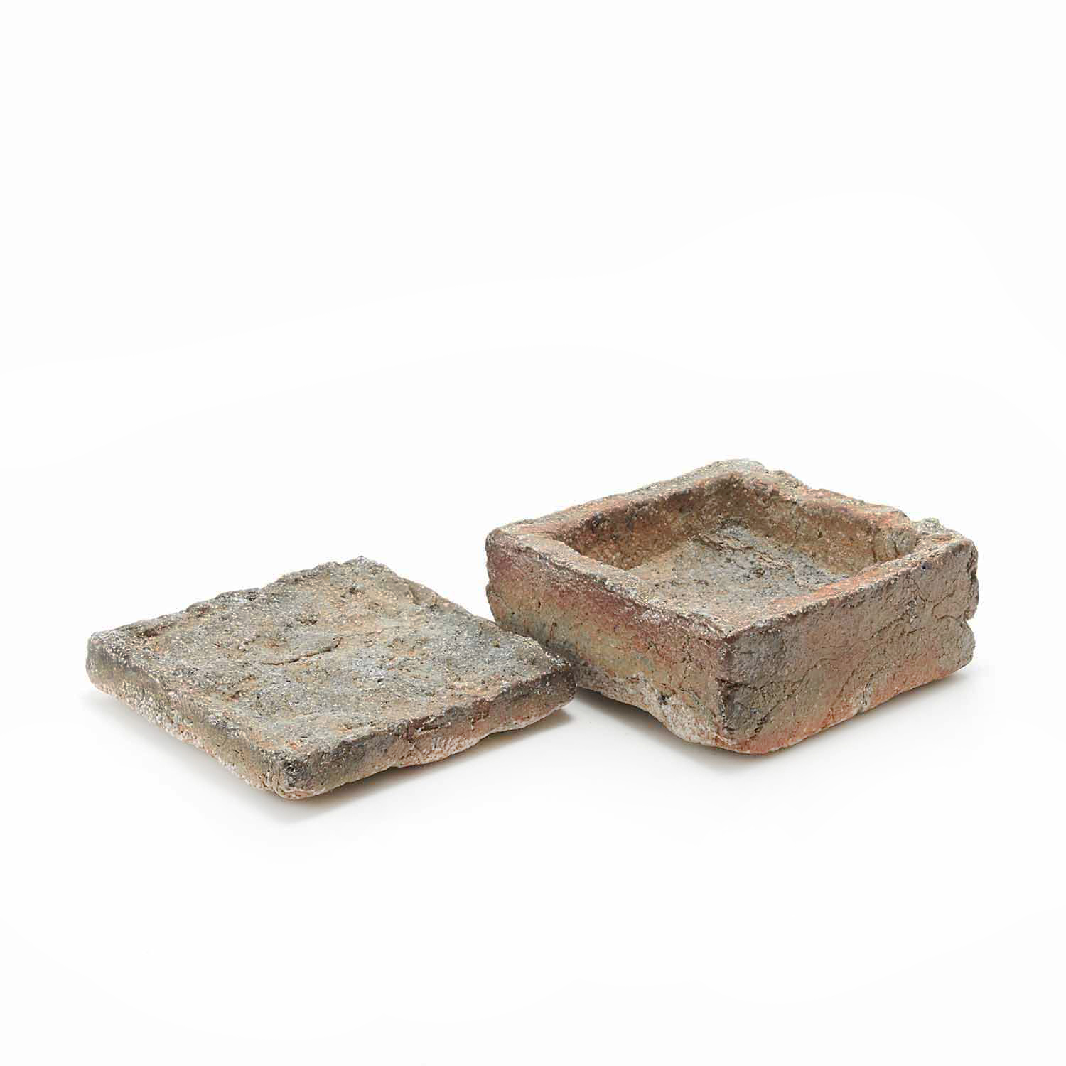 ローマ時代の漆喰の箱の写しから、この匣のシリーズの制作が始まりました。土やガラス質の素材、時には藁なども入れ毎回粘土を作ってから制作をしているため全く同じ質感の作品はありません。