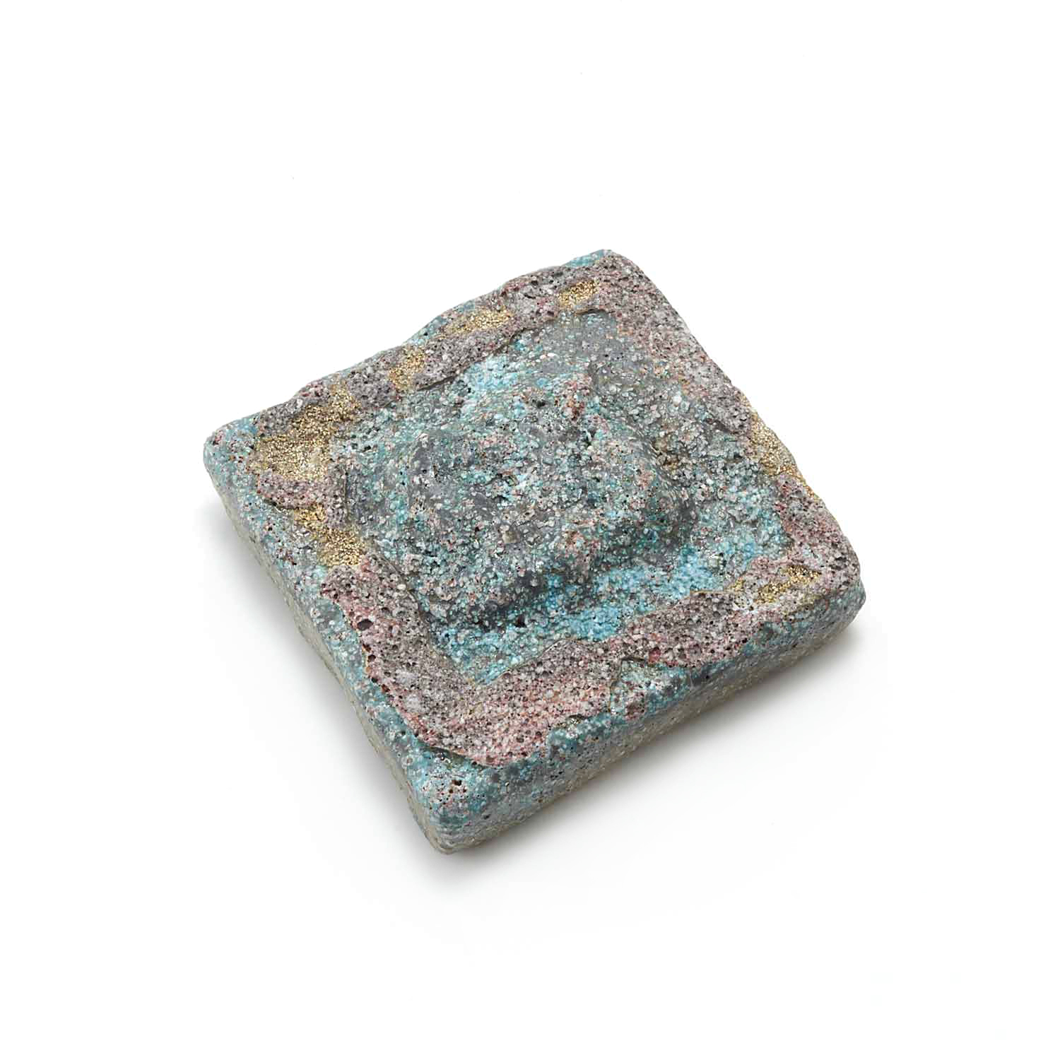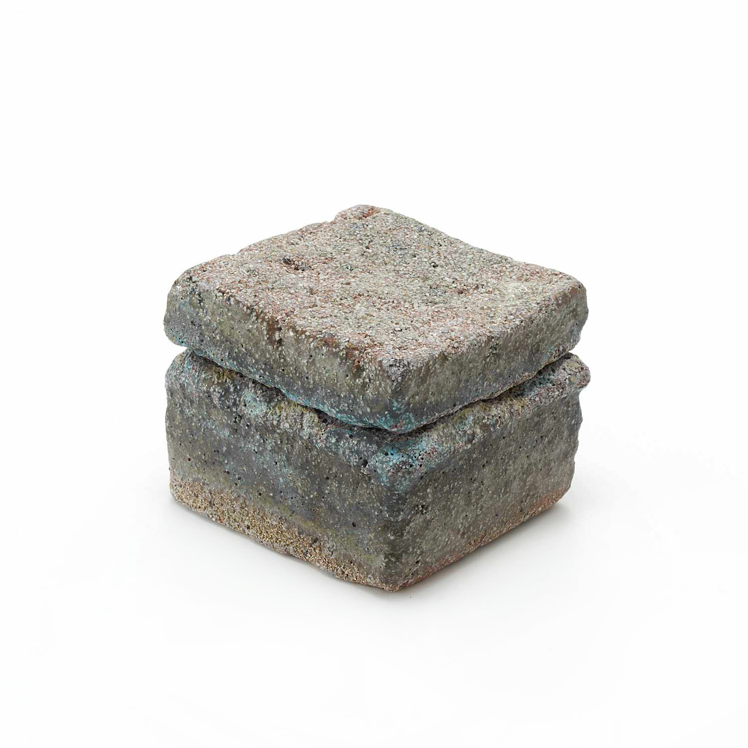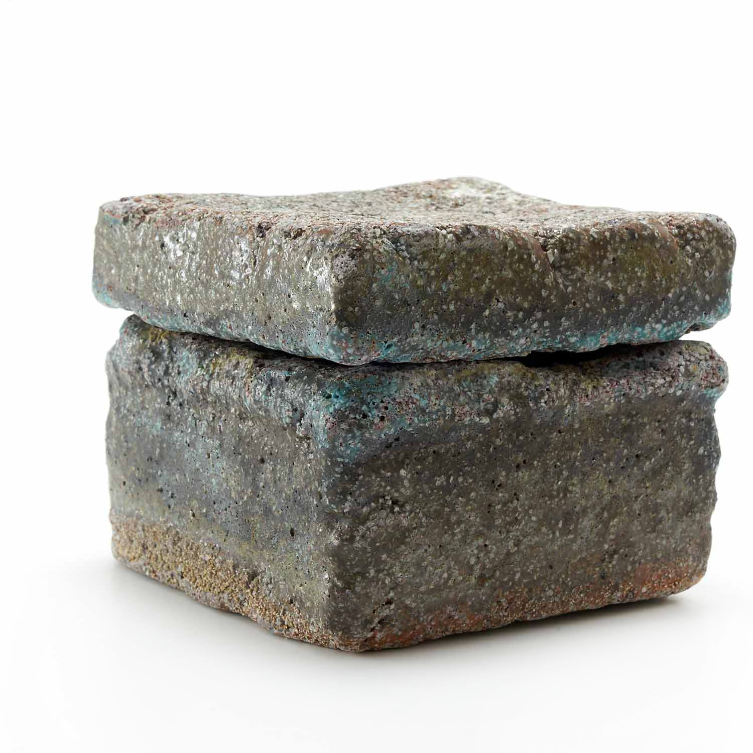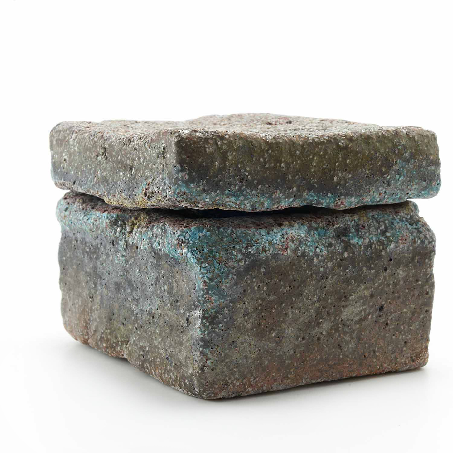 The production of this series of sacks began with a copy of a Roman plaster box. Since I make each piece from clay, glassy materials, and sometimes straw, no two pieces have exactly the same texture.
