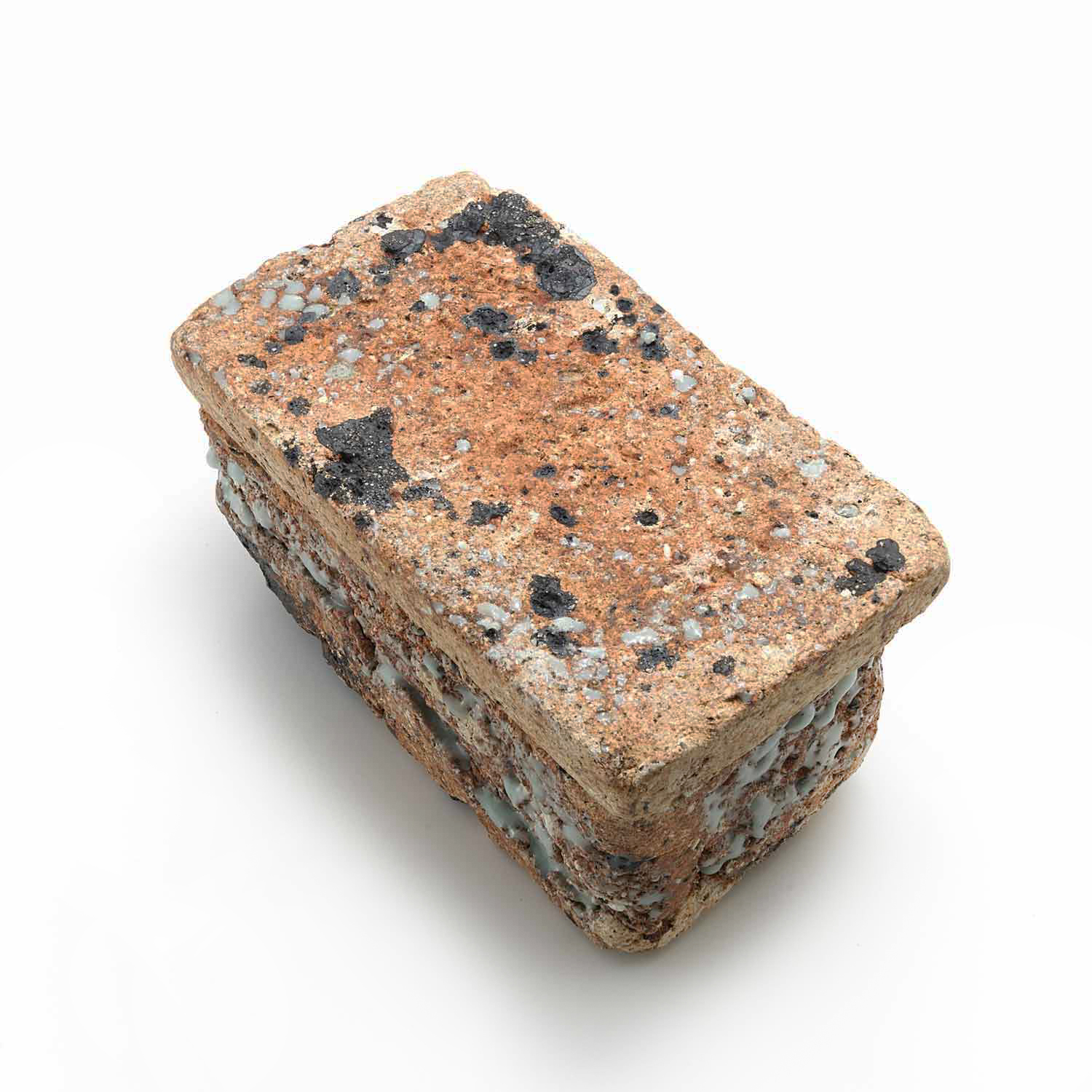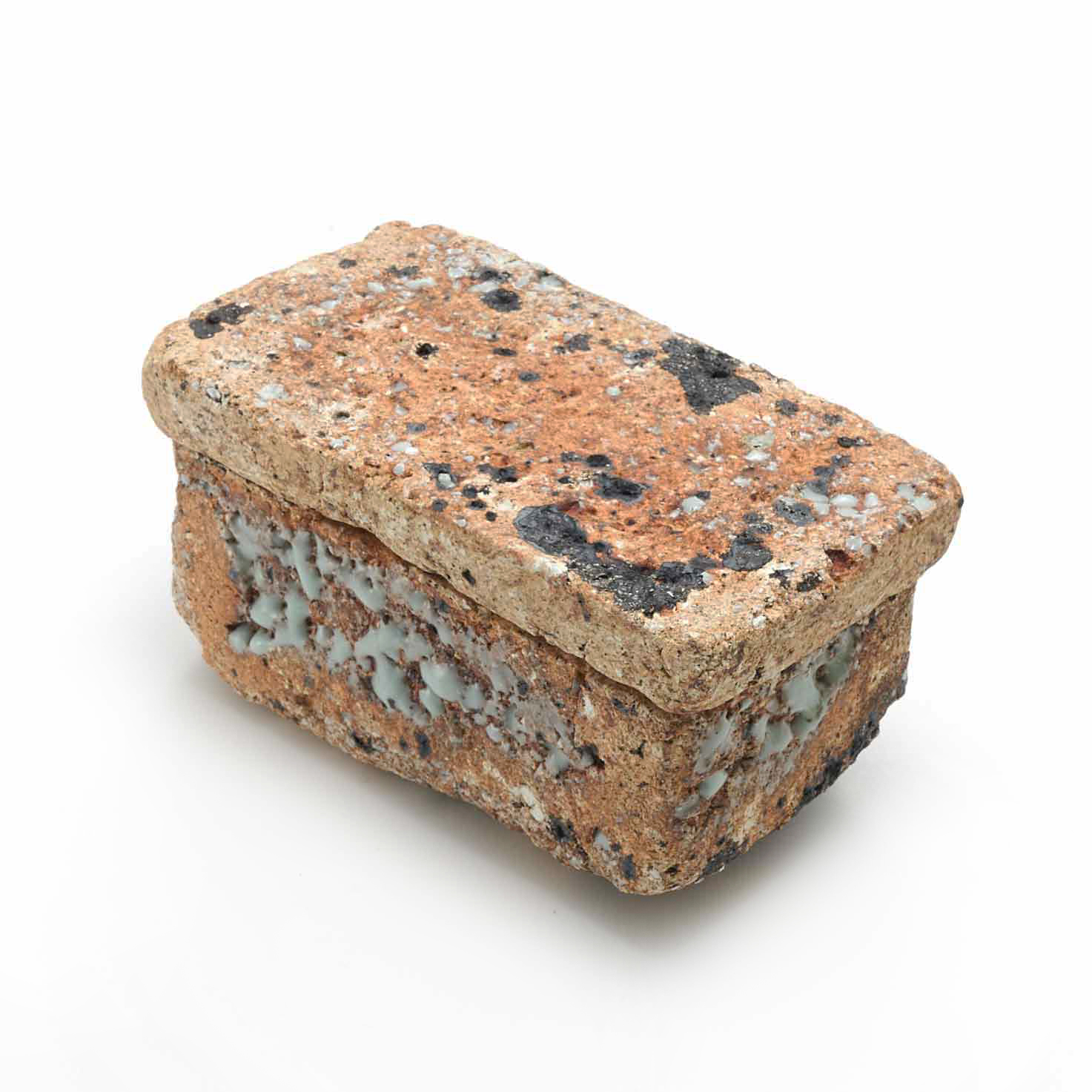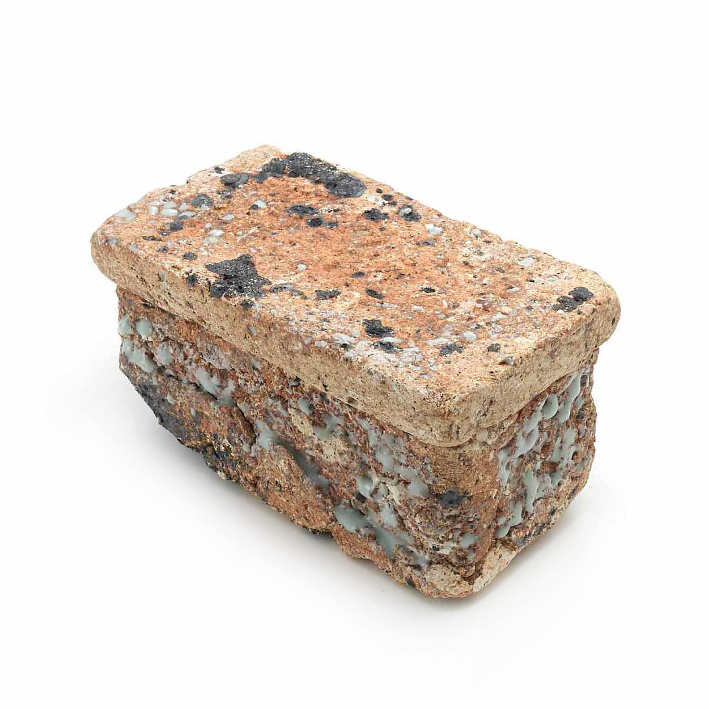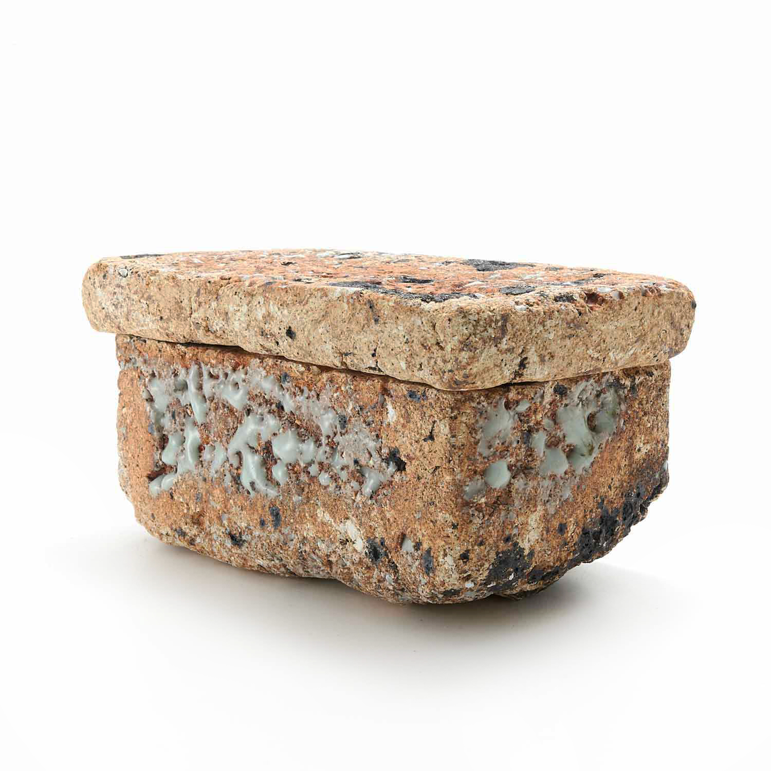 The production of this series of sacks began with a copy of a Roman plaster box. Since I make each piece from clay, glassy materials, and sometimes straw, no two pieces have exactly the same texture.