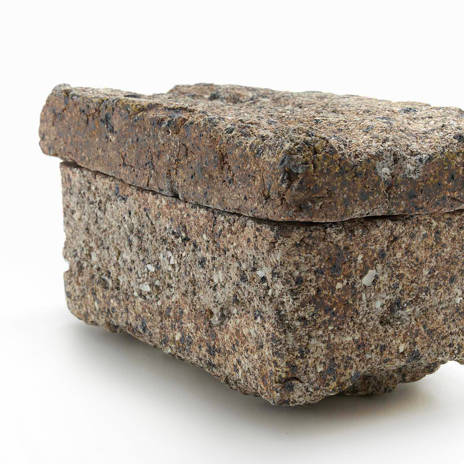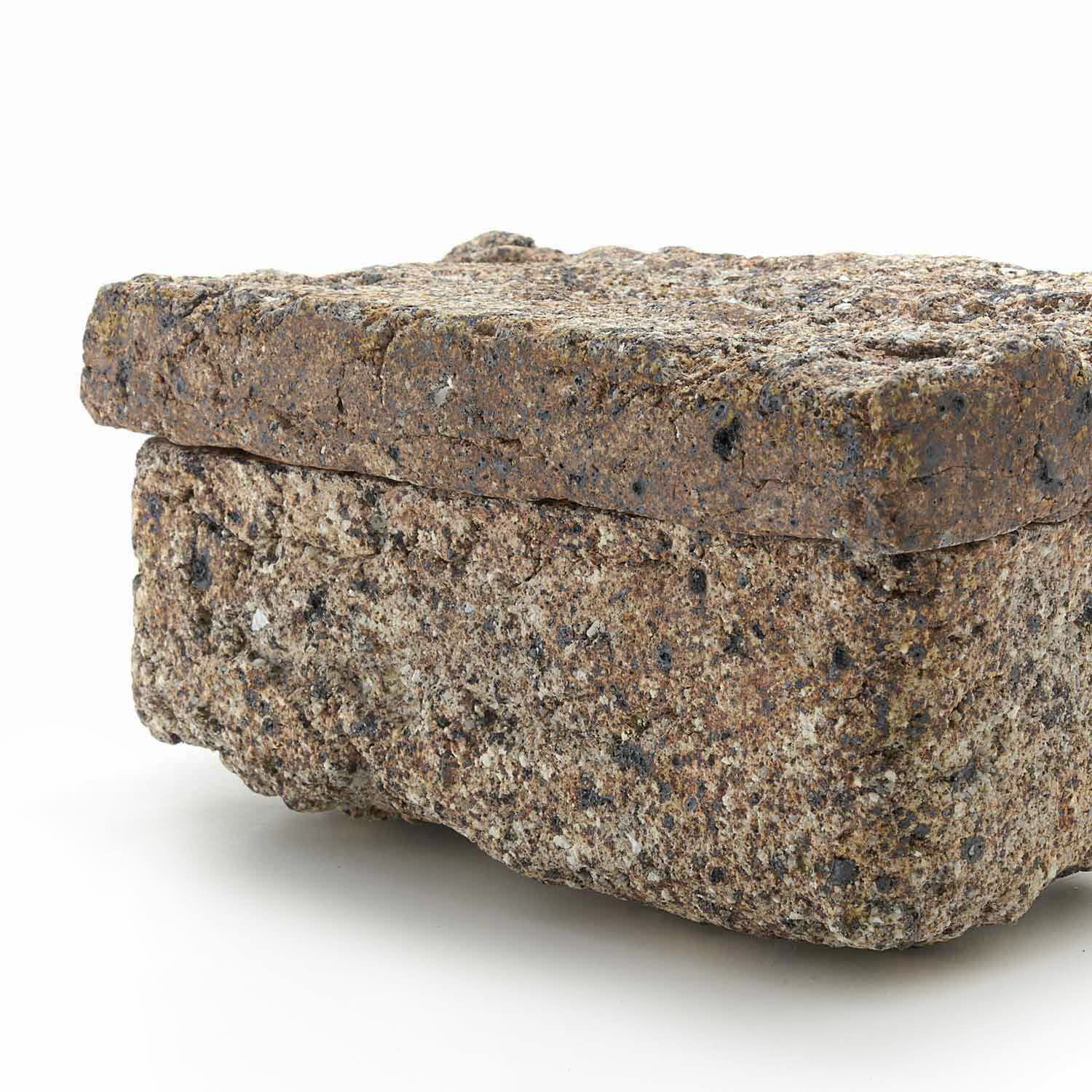 ローマ時代の漆喰の箱の写しから、この匣のシリーズの制作が始まりました。土やガラス質の素材、時には藁なども入れ毎回粘土を作ってから制作をしているため全く同じ質感の作品はありません。