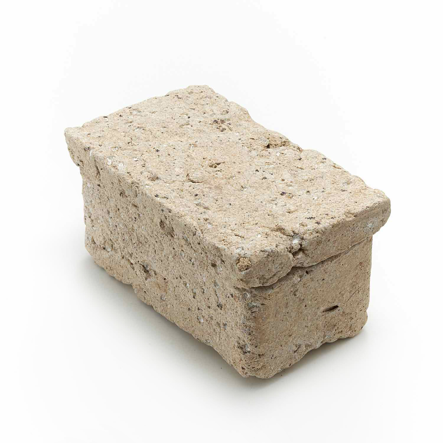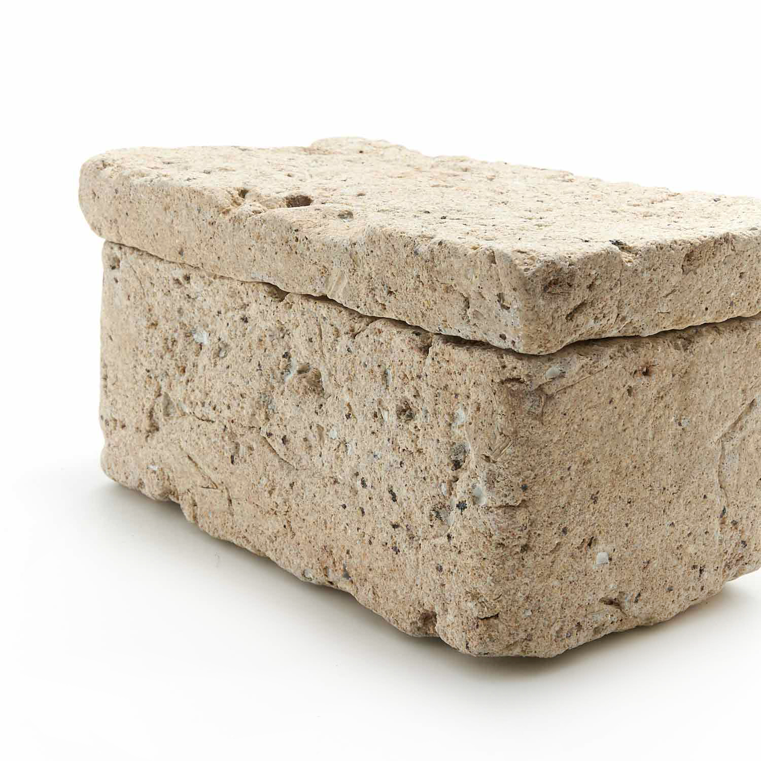 The production of this series of sacks began with a copy of a Roman plaster box. Since I make each piece from clay, glassy materials, and sometimes straw, no two pieces have exactly the same texture.