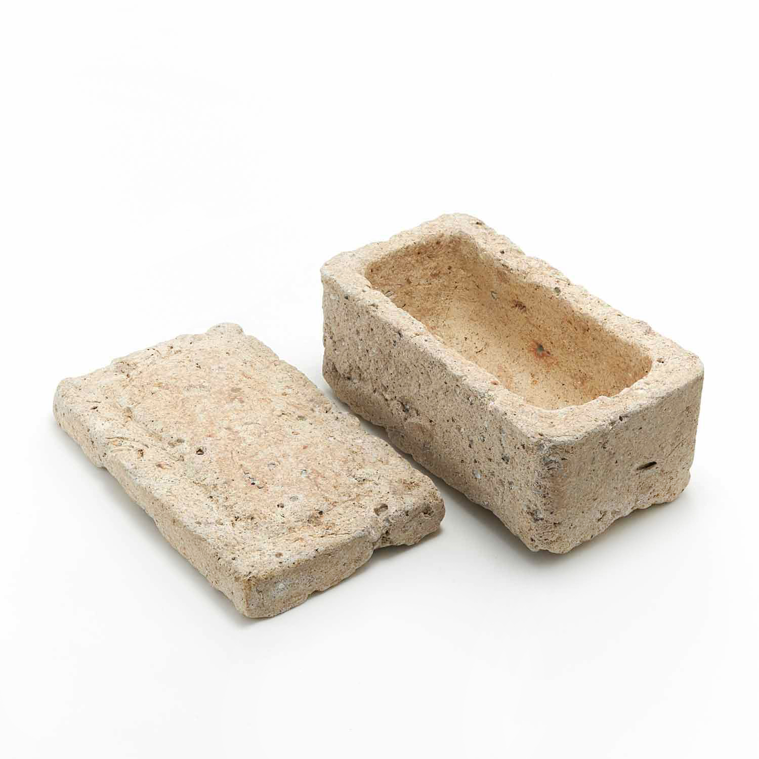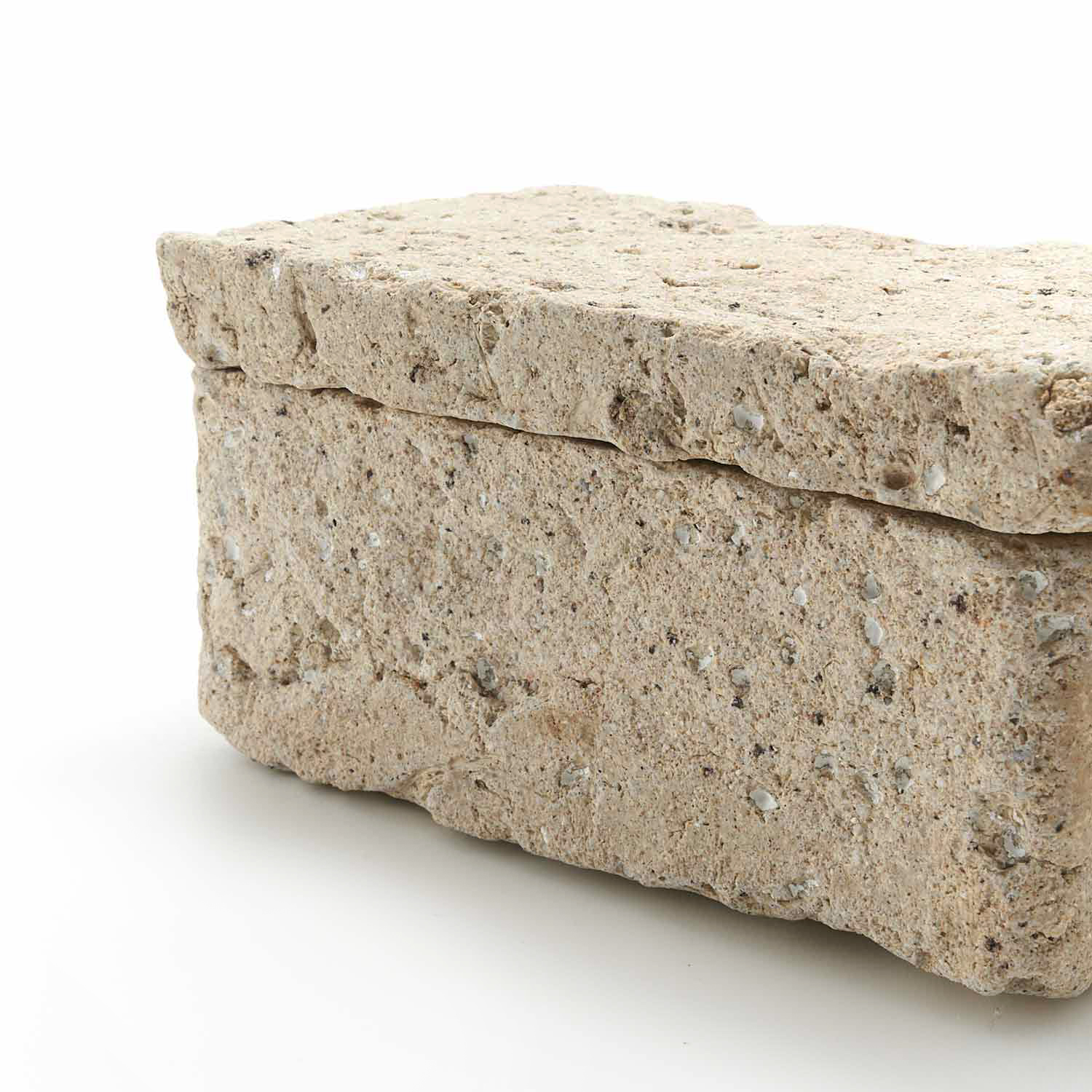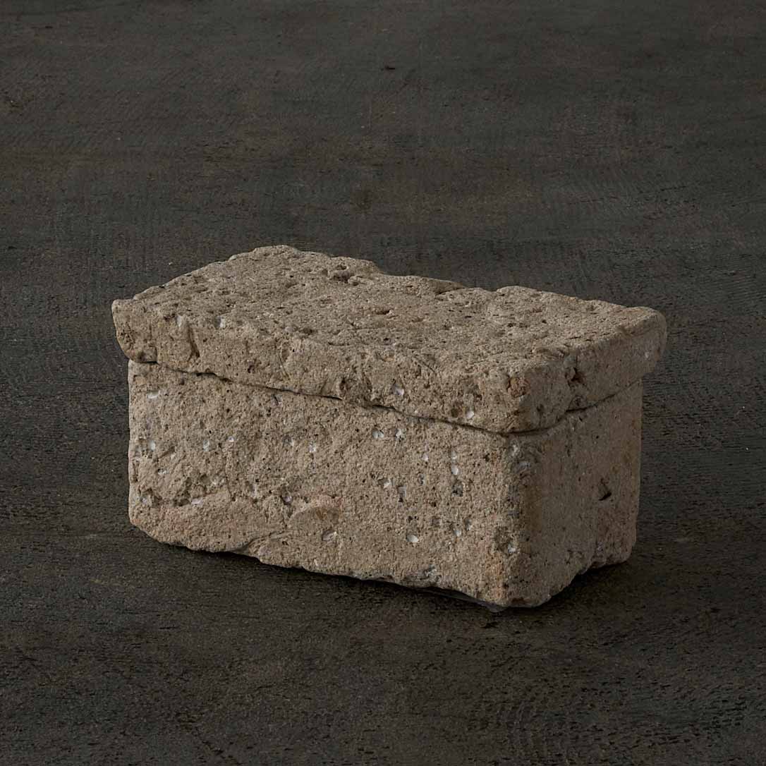 ローマ時代の漆喰の箱の写しから、この匣のシリーズの制作が始まりました。土やガラス質の素材、時には藁なども入れ毎回粘土を作ってから制作をしているため全く同じ質感の作品はありません。