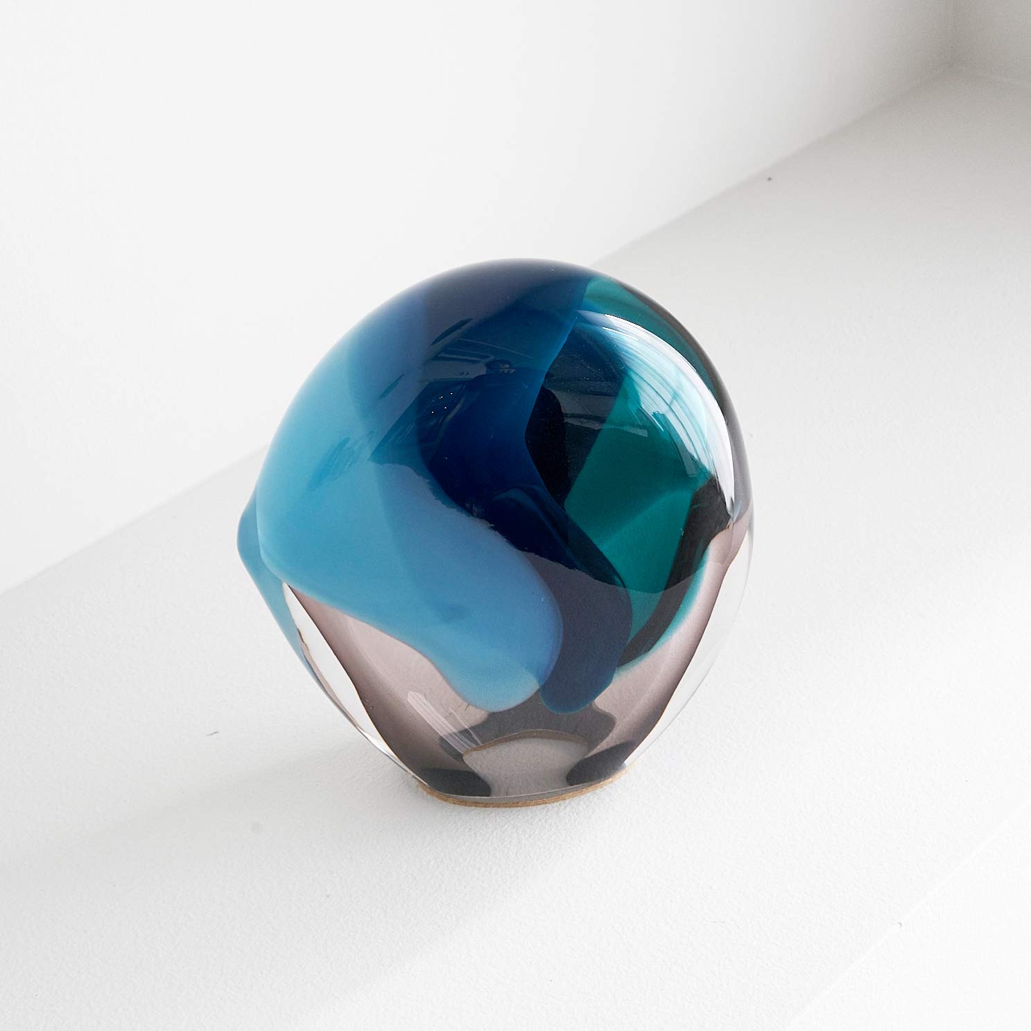 The layers of blue and green represent a bountiful lake.Inspired by the mountains and lakes of Yosemite.