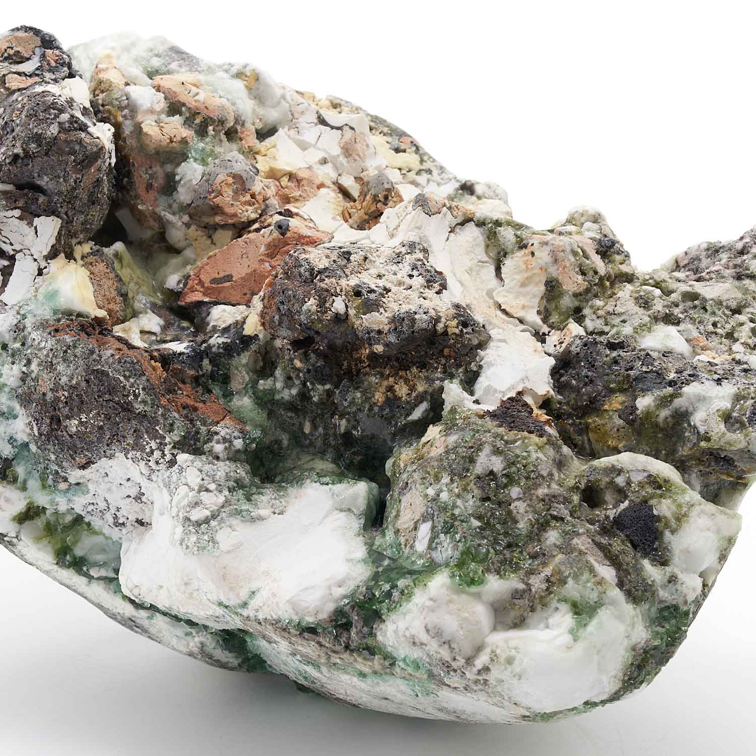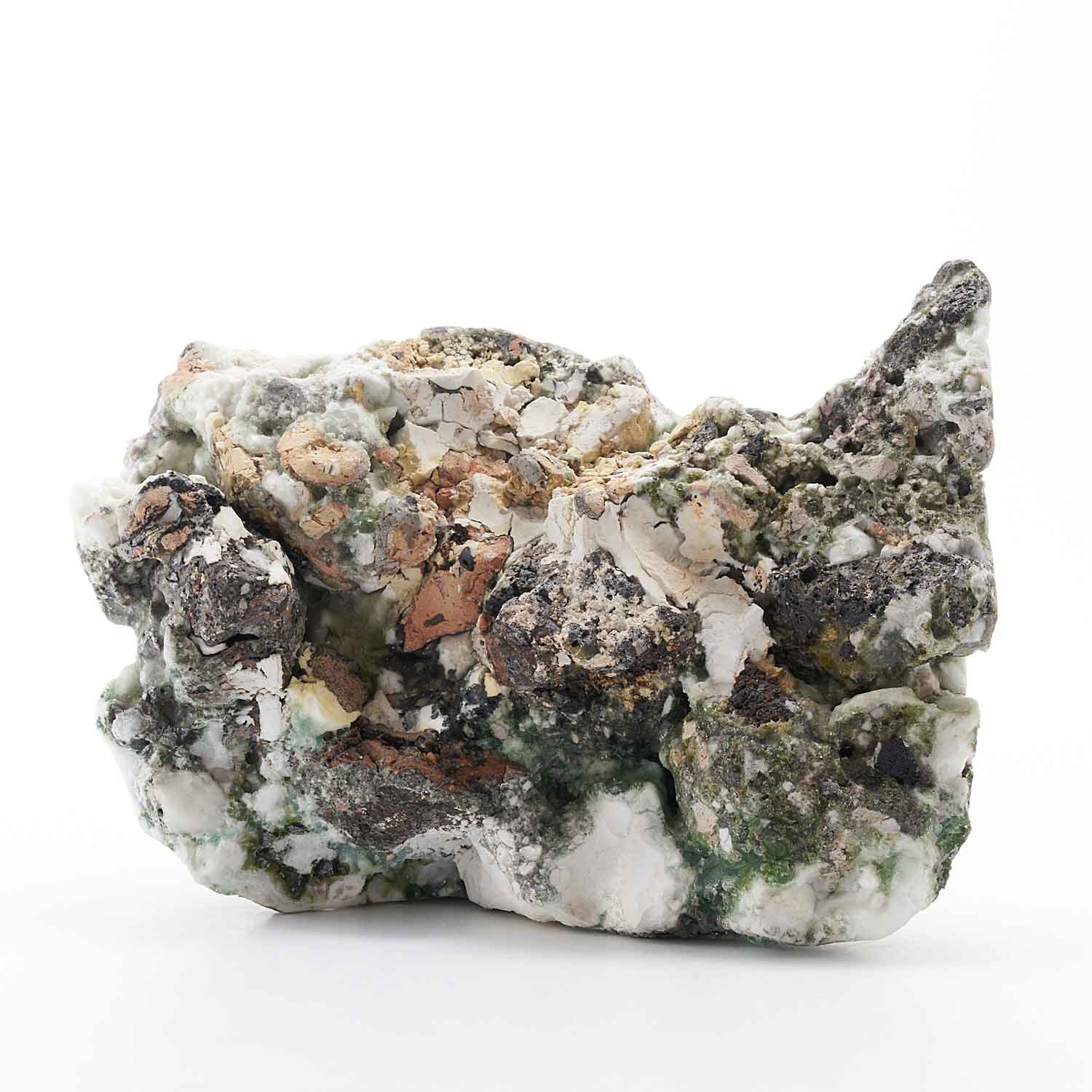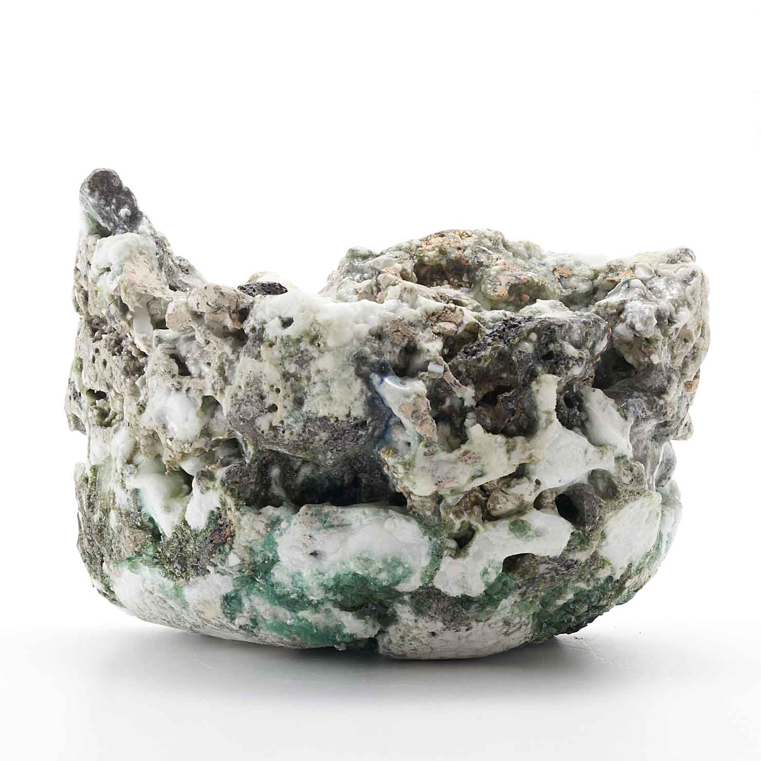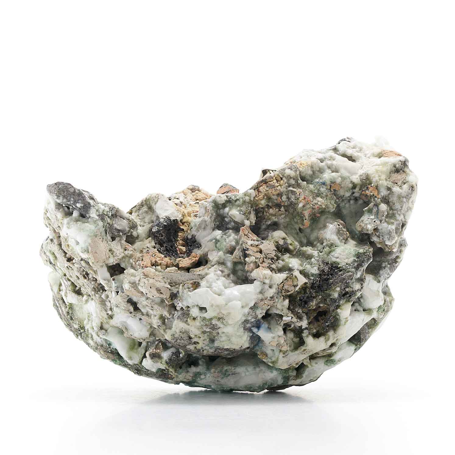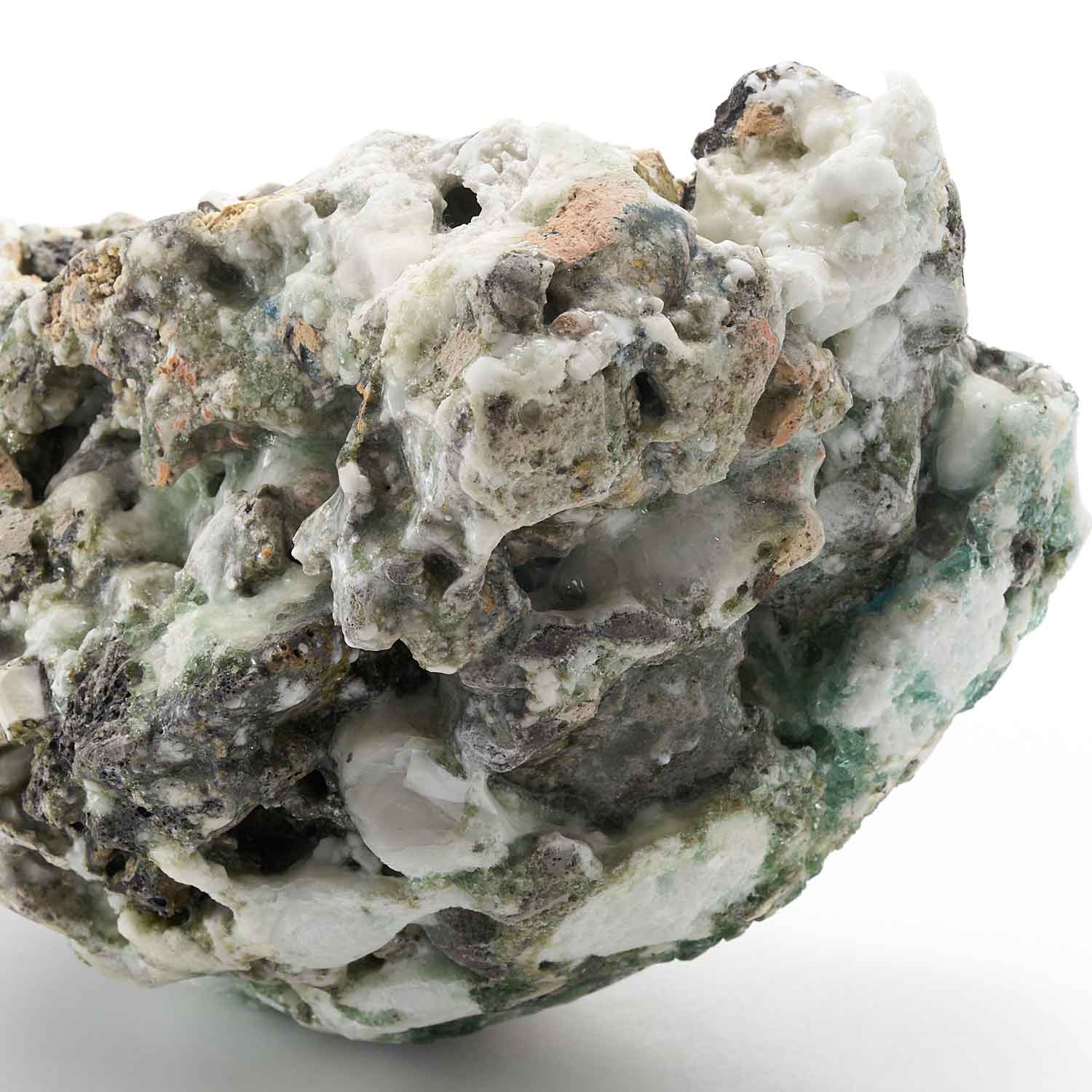 The pottery was filled with glaze and ceramic shards, fired, then broken and finished. Small crystallized minerals sticking to the crevices of a mass made up of multiple minerals. I was aiming for such a grand scale. The texture and density are overwhelming.