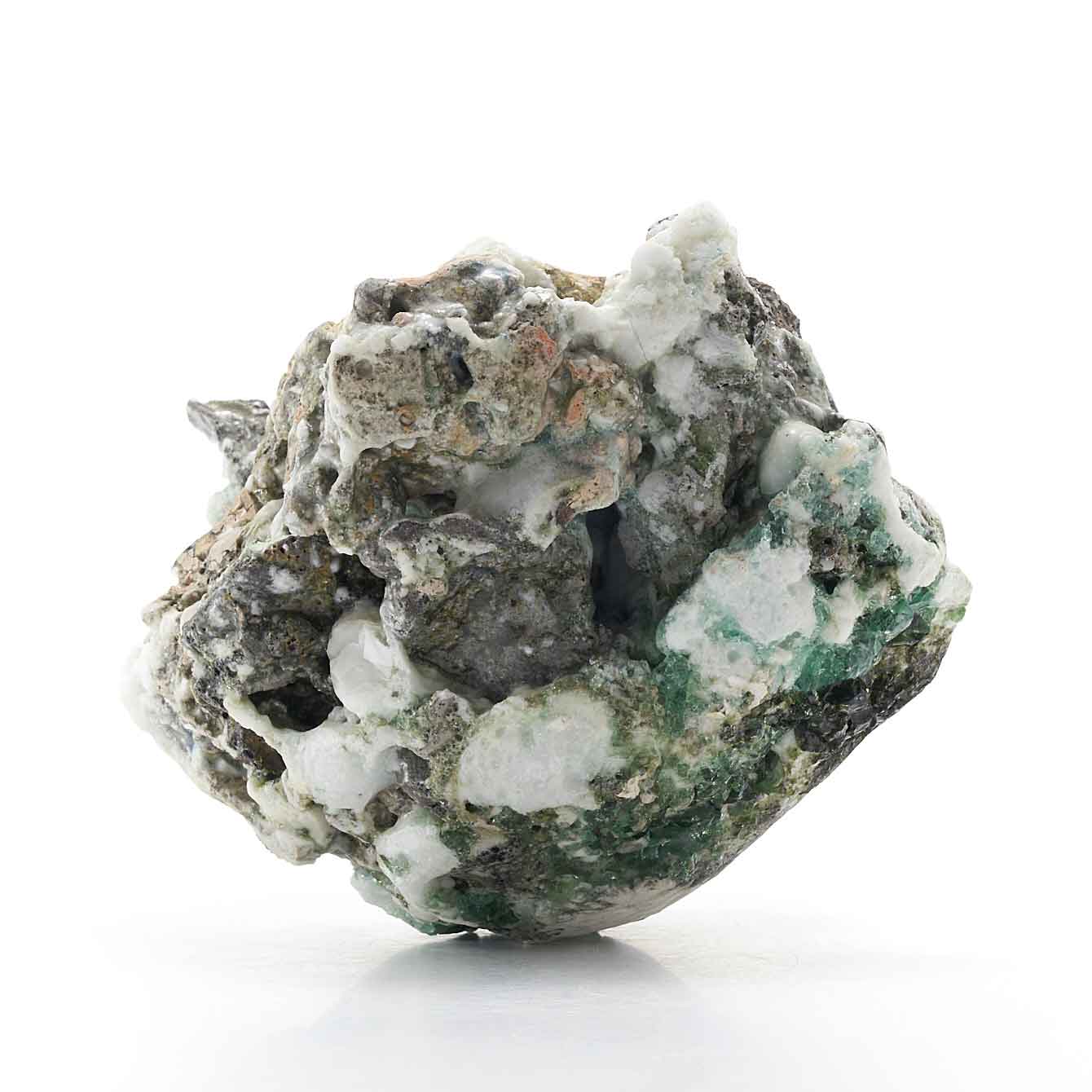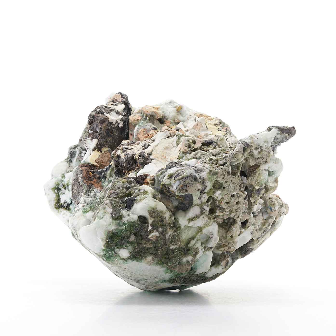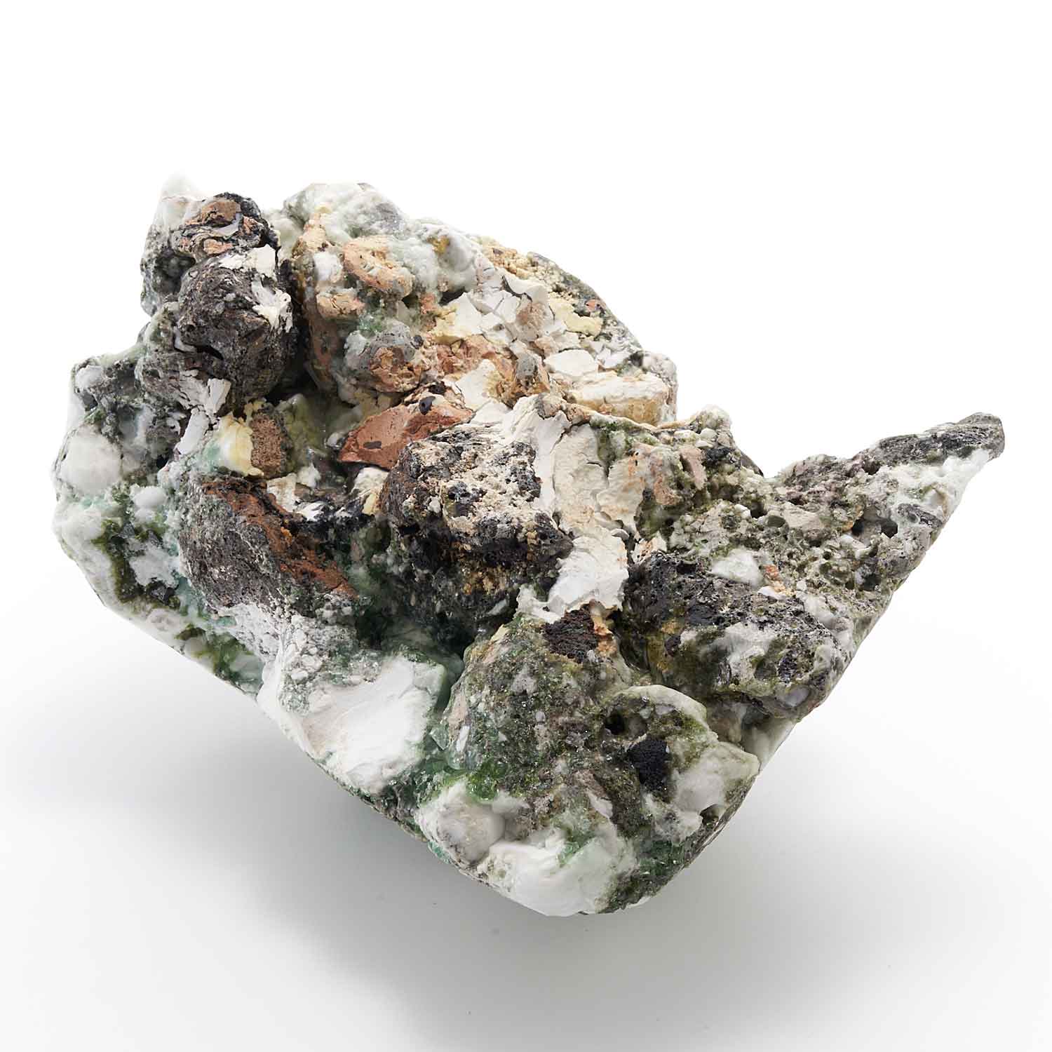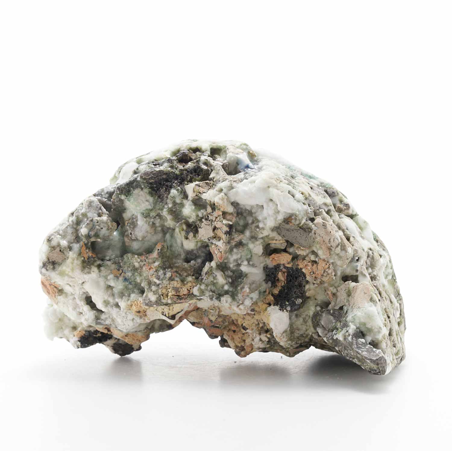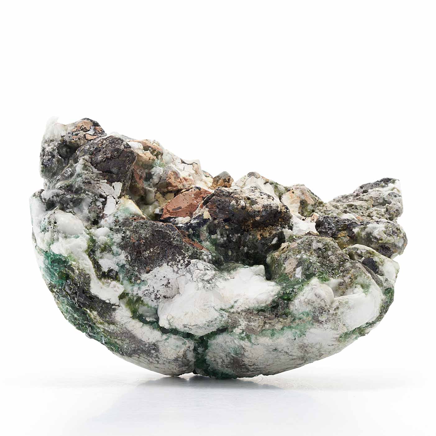 The pottery was filled with glaze and ceramic shards, fired, then broken and finished. Small crystallized minerals sticking to the crevices of a mass made up of multiple minerals. I was aiming for such a grand scale. The texture and density are overwhelming.