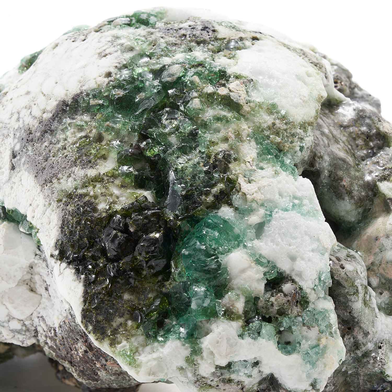 「陶器の中を釉薬や陶片で満たし、焼成した後に壊して仕上げました。複数の鉱物から成る塊の隙間にびっしりと張り付く結晶化した小さな鉱物。そんな壮大なスケールを目指して。」質感と密度に圧倒されます。