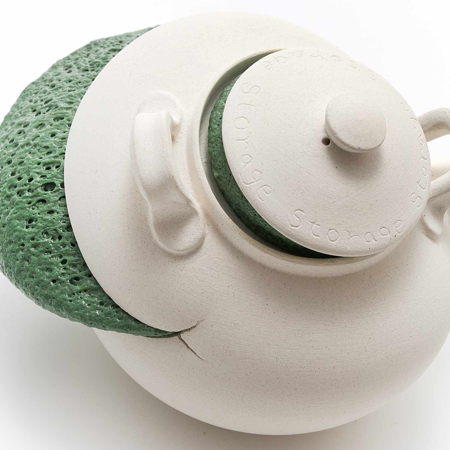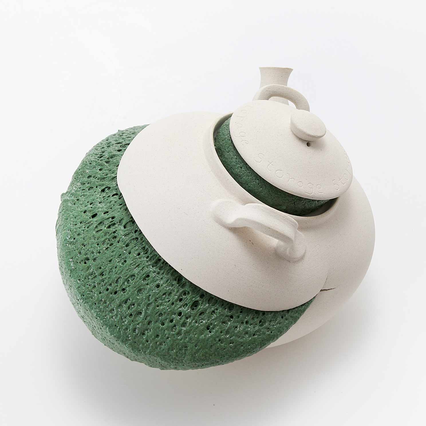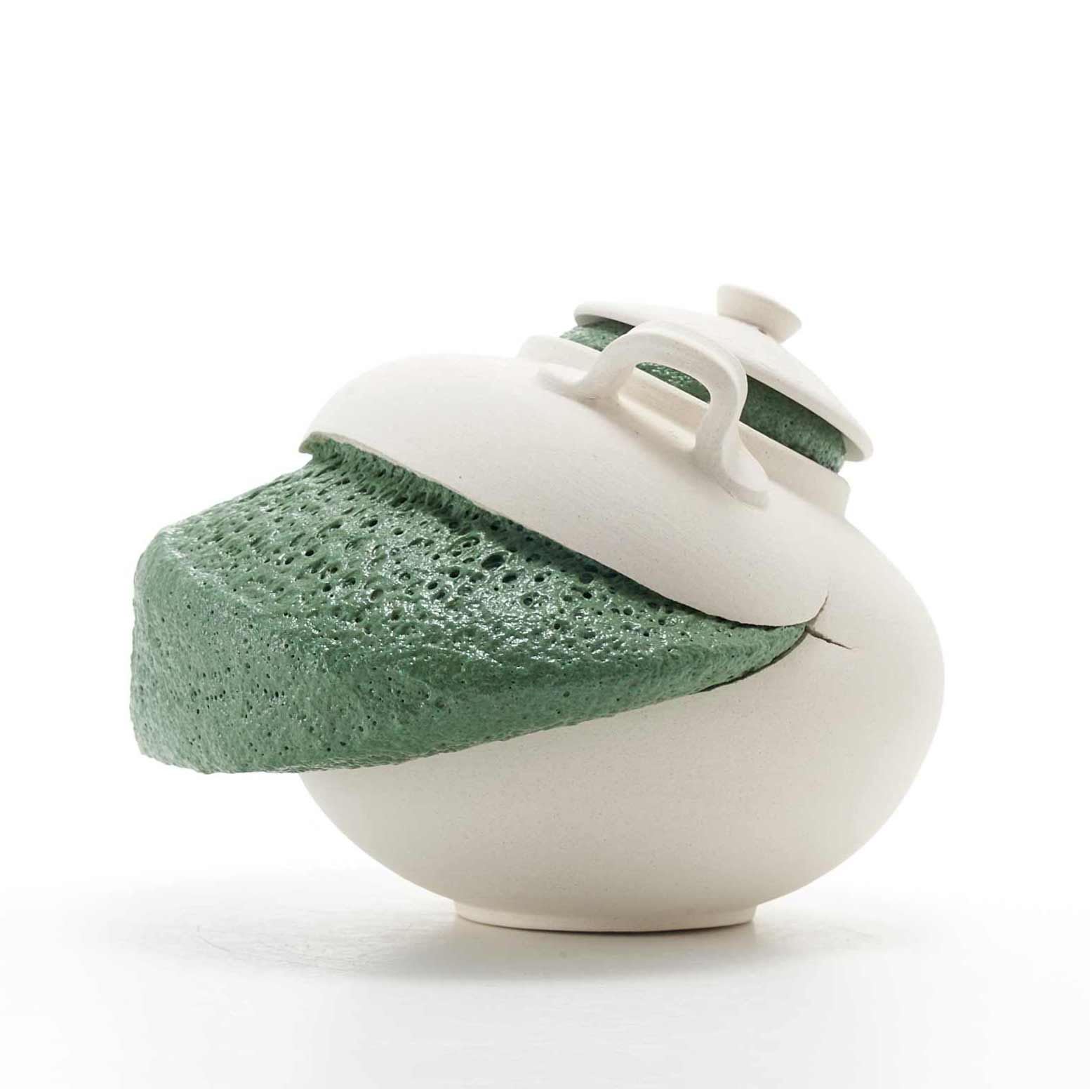「白磁の陶器=潔癖の美がゆがむ姿を見てみたい。窯の中で釉薬に暴れてもらいました。焼く度に様々な表情を見せてくれます。」釉薬の力強さとユーモラスな表情が共存している澤田さんならではの作品です。