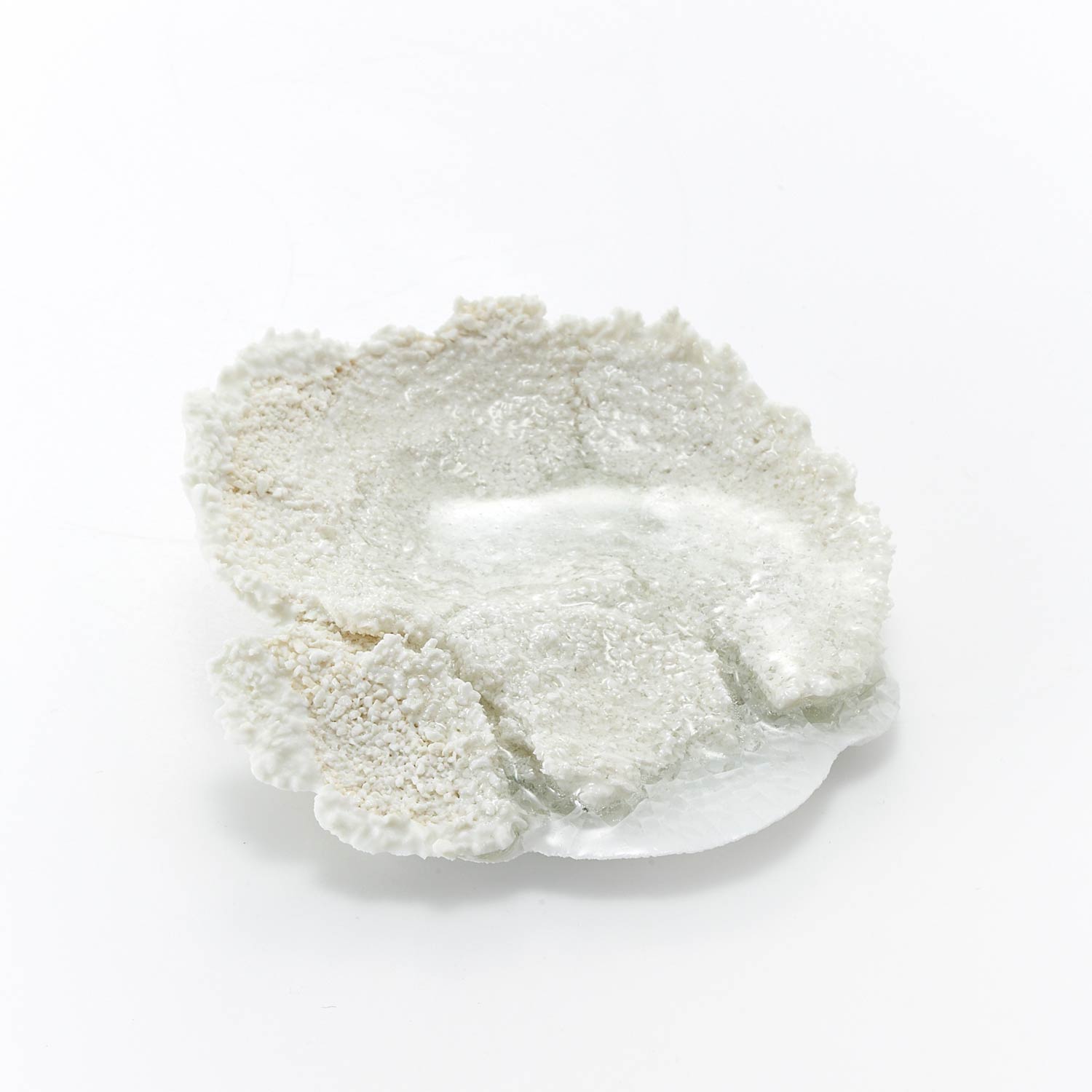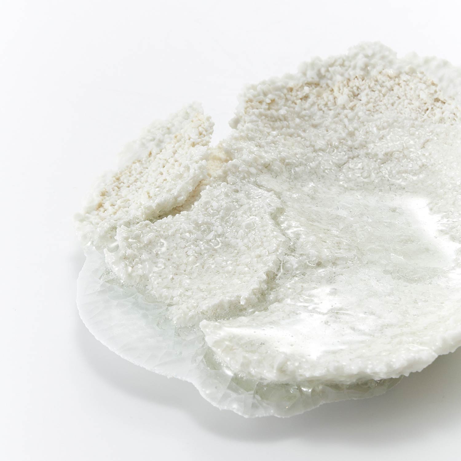 「pellucid water 澄んだ水」というタイトルの作品。邪気を払う「若水」からイメージしたそうです。色々な質感の重なりと、作品の裏側のほんのりと色付いた感じが魅力です。裏の窪みに釘などを引っ掛け、壁掛けにもなります。