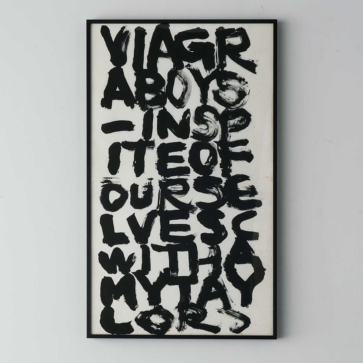 This one is framed in a black aluminum frame. He wrote this piece while listening to music.