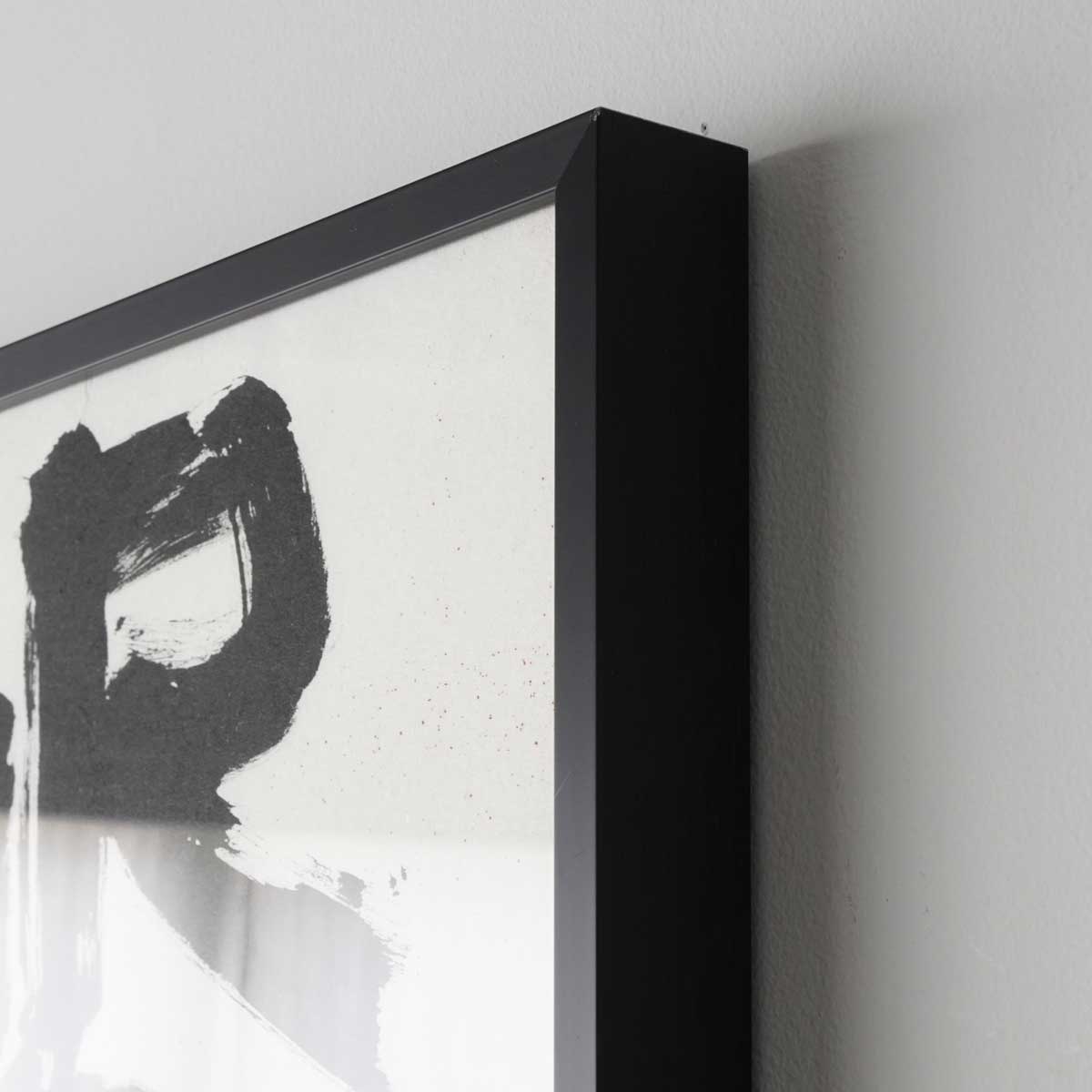 額装、裏打ち込み値段 こちらは黒のアルミのフレームで額装しています。音楽を聴きながら書いた作品だそうです。
