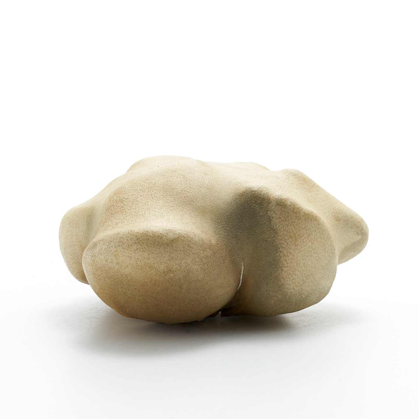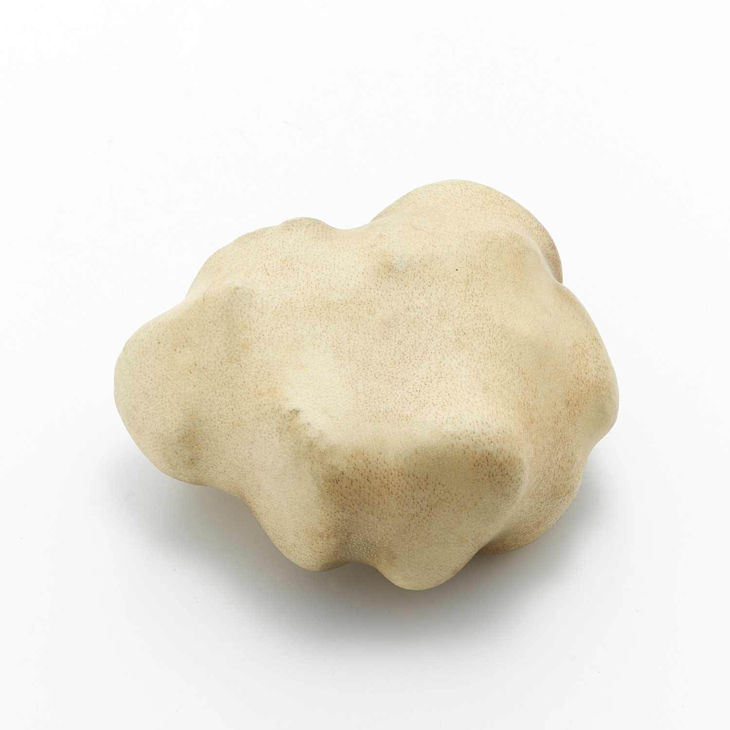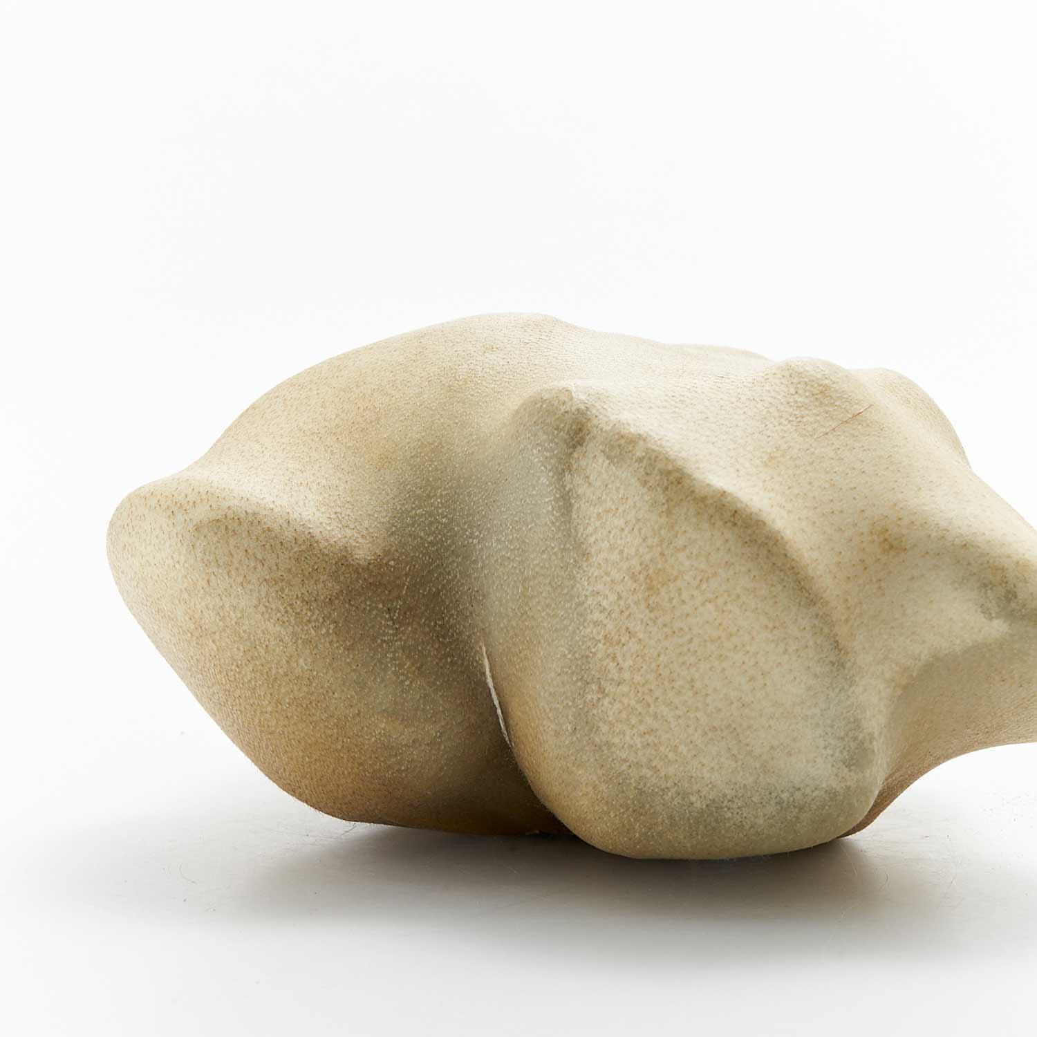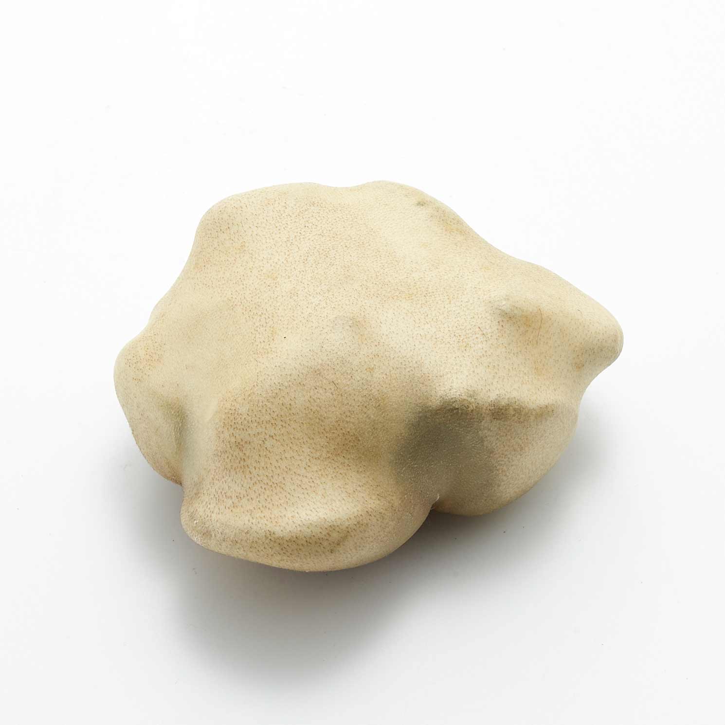 アトリエのある和知の森の石を鹿の皮でぎゅっと包んだ作品です。丸い小石を包んだ手のひらサイズの愛らしい形です。一見、皮とは思えない質感が魅力です。