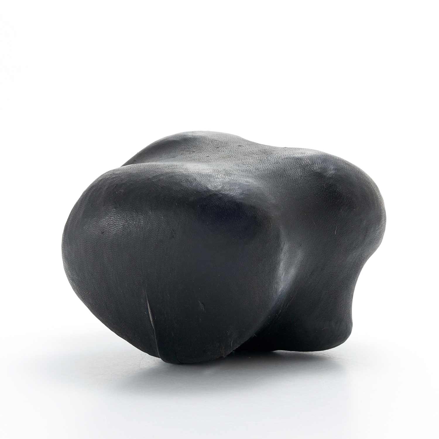 This work is made of stones from the Wachi Forest, where the atelier is located, tightly wrapped in deer skin. This one is made of skin dyed black with tea tannin. The shape created by wrapping a few rounded pebbles is unique. he texture of the hide, which at first glance does not seem like hide, is appealing.