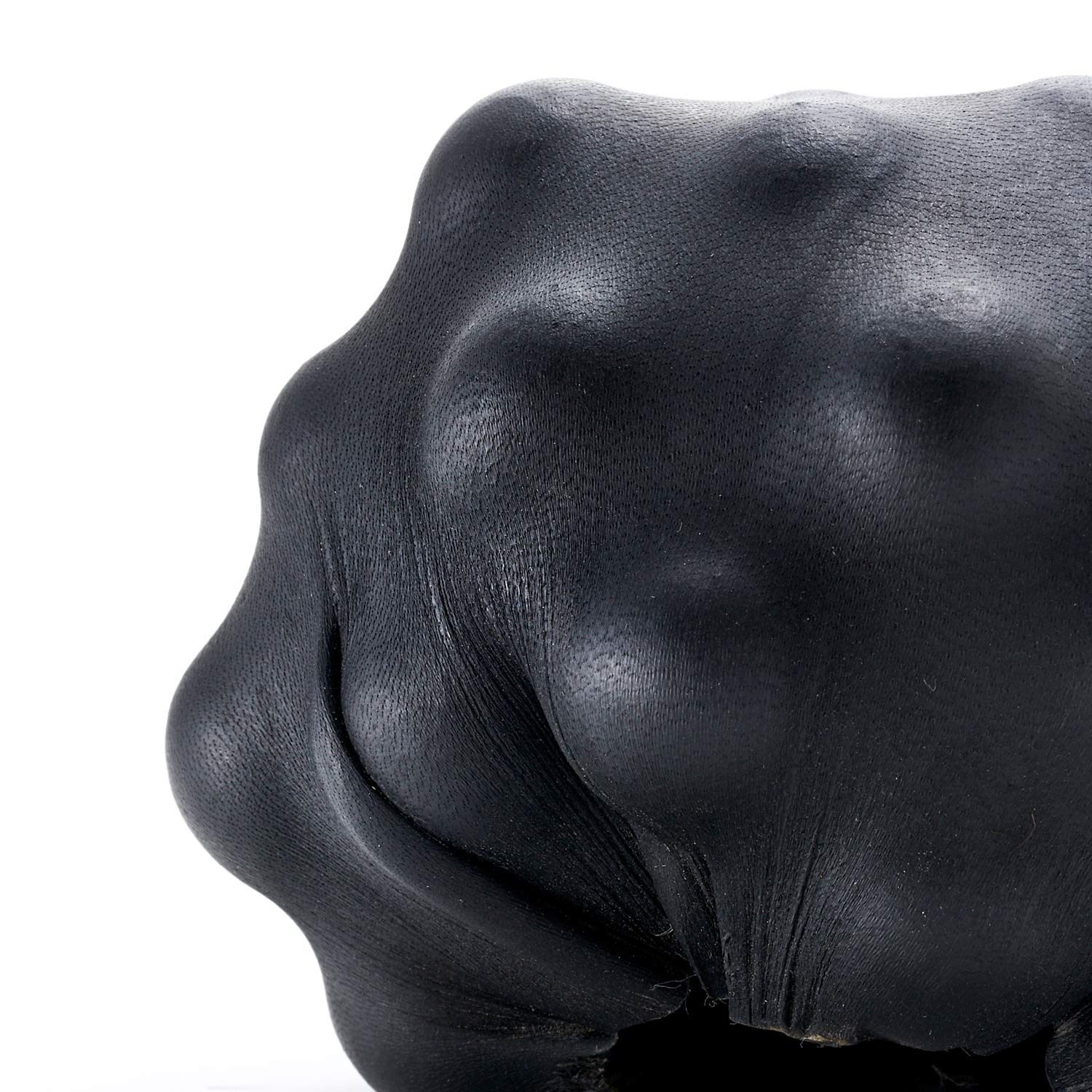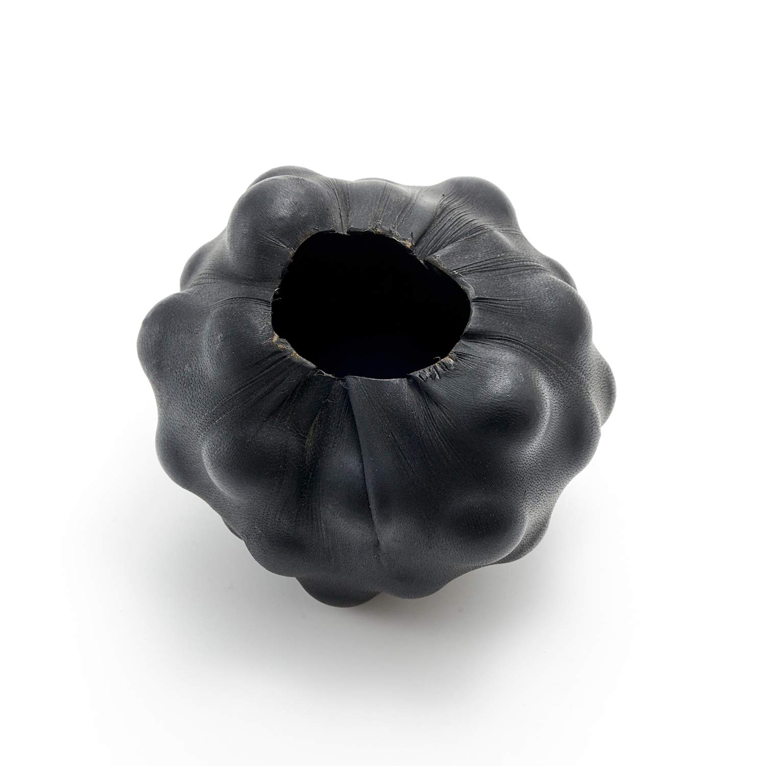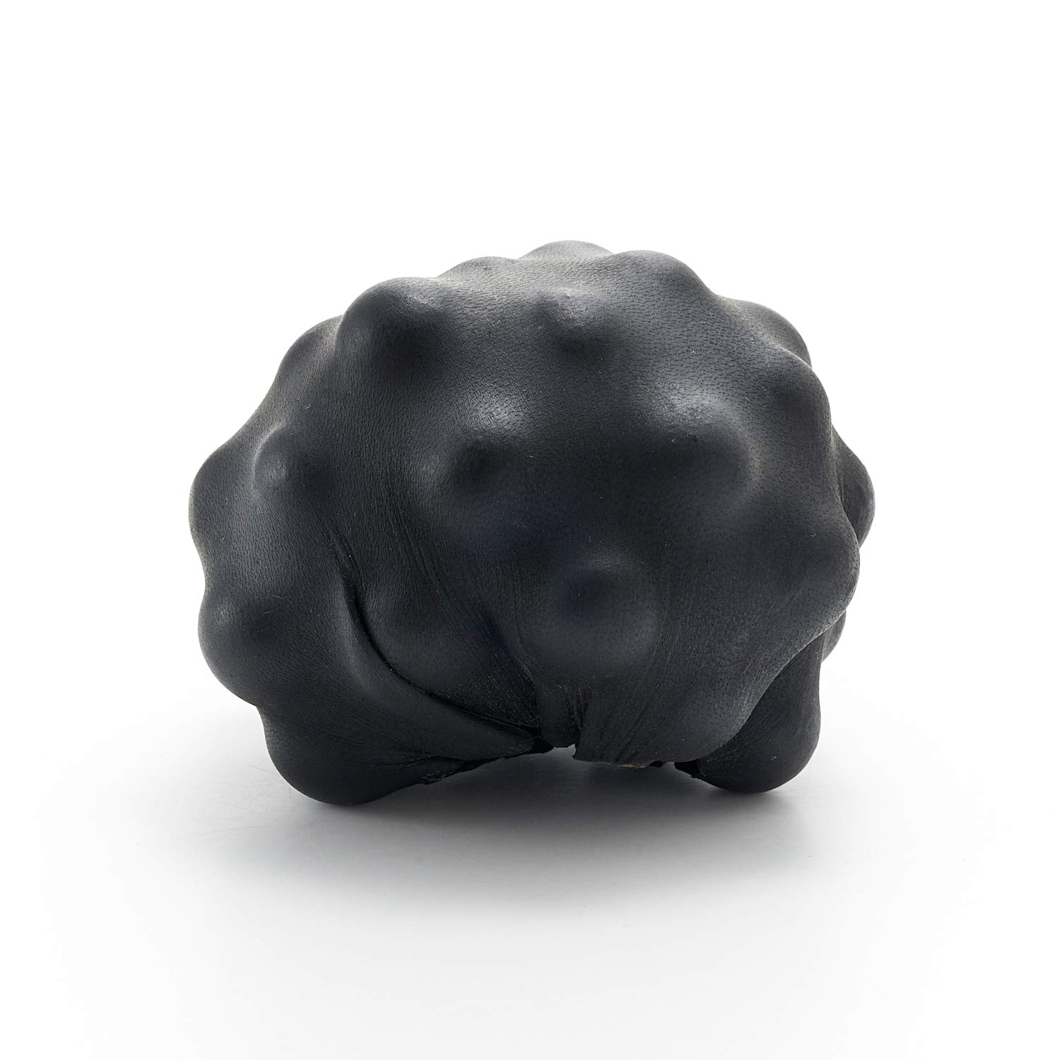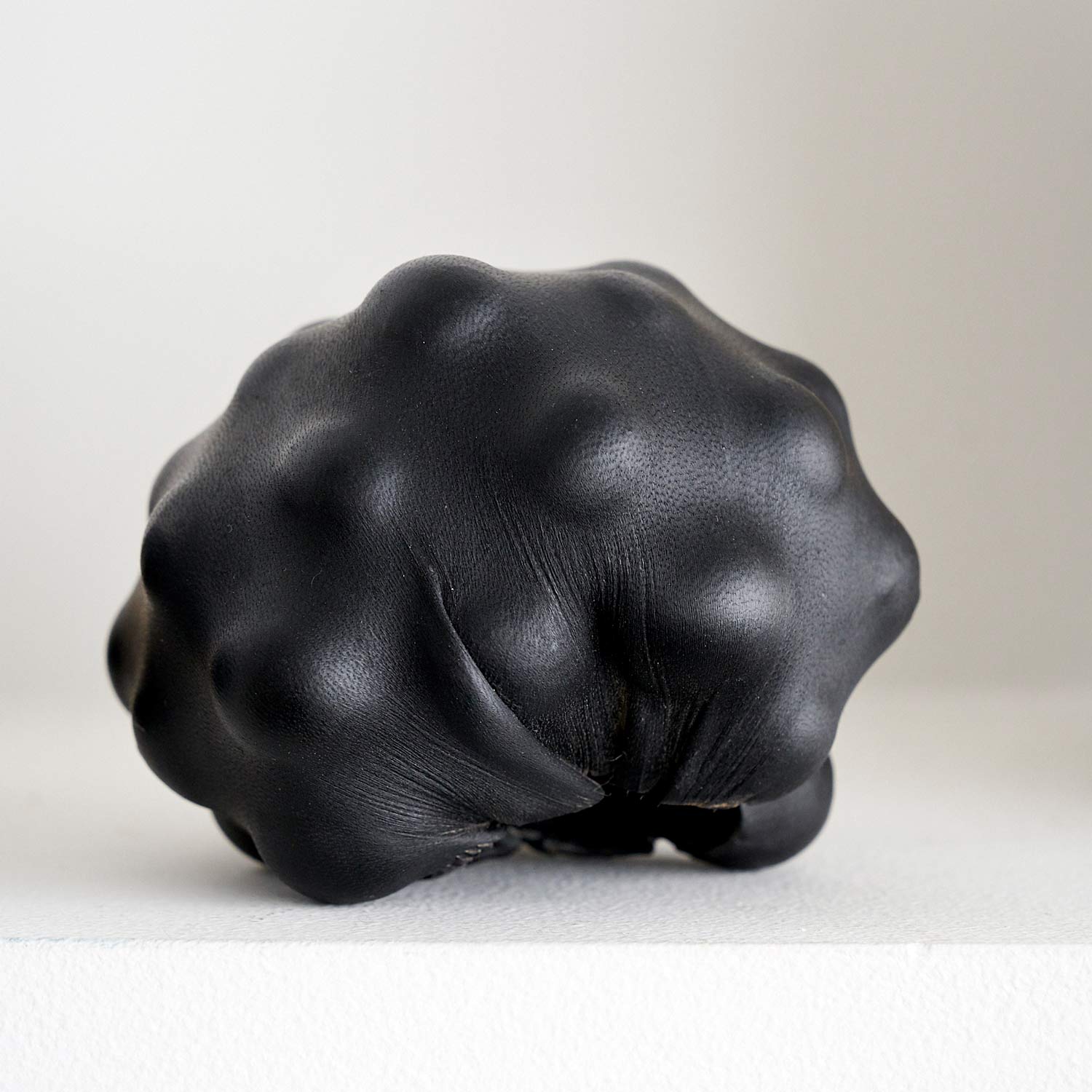 丸い石などを鹿の皮で包み、泡のような形に仕上げた小さなオブジェ。鹿の皮の質感と形の面白さが魅力的です。お茶のタンニンで染めた黒色。中は空洞なのでとても軽く画鋲などで壁に掛けることもできます。