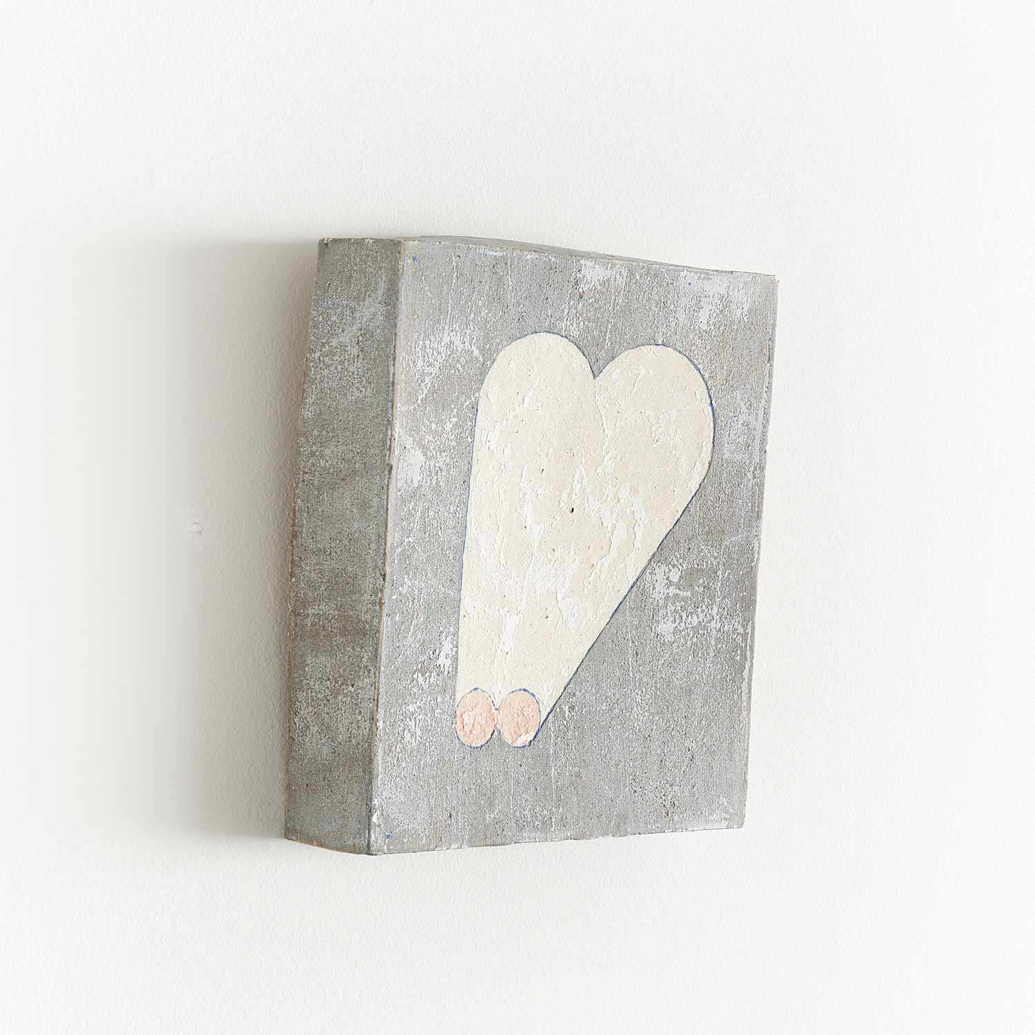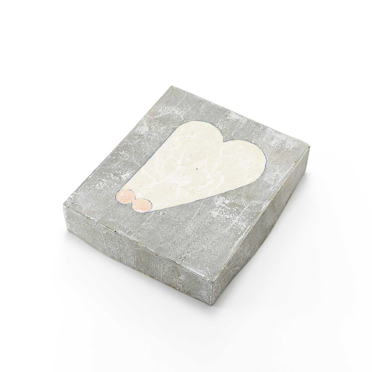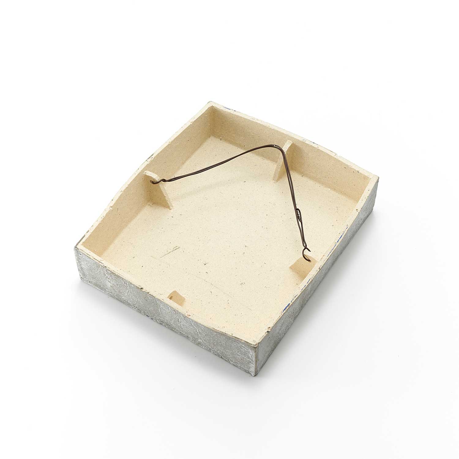薄い陶板で作られた箱のような形の壁掛け。繊細なラインと色で抽象的な絵が描かれています。この独特な質感は矢尾板さん独自の技法から生まれています。